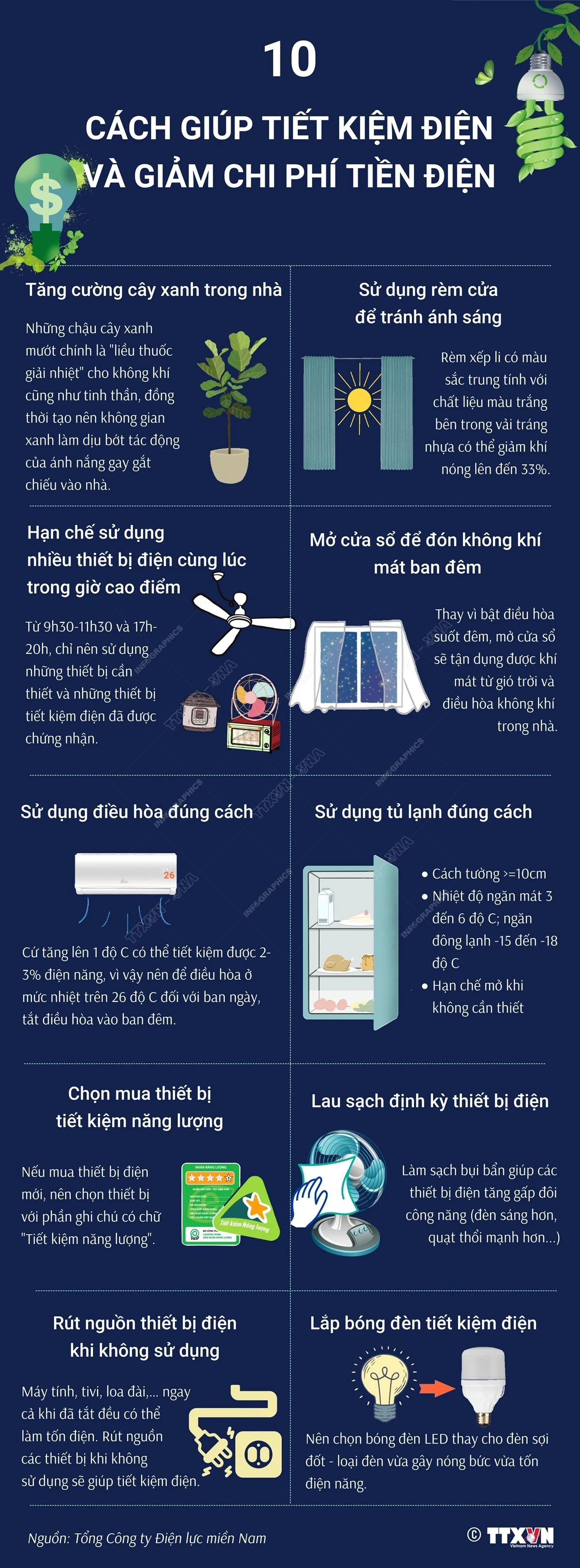 Với những mẹo nhỏ và đơn giản, các hộ gia đình có thể cắt giảm lượng điện năng tiêu thụ trong mùa hè nắng nóng, nhờ đó giảm chi phí tiền điện hằng tháng.