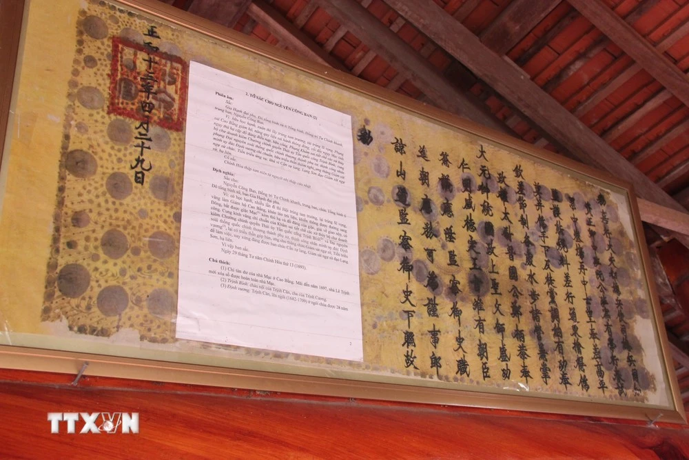 Tờ sắc phong cho cụ Nguyễn Công Ban (1693), một trong những sắc phong thuộc bộ sưu tập Văn bản Hán Nôm làng Trường Lưu.