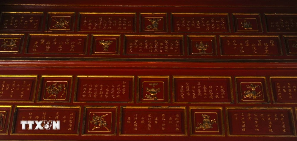 Riêng ở Hoàng Thành, Điện Thái Hòa có 242 ô thơ, sơn son thếp vàng; Thế Miếu có 679 ô thơ, sơn son thếp vàng; Hưng Miếu có 110 ô thơ, sơn son thếp vàng; Triệu Miếu có 62 ô thơ, sơn son thếp vàng.
