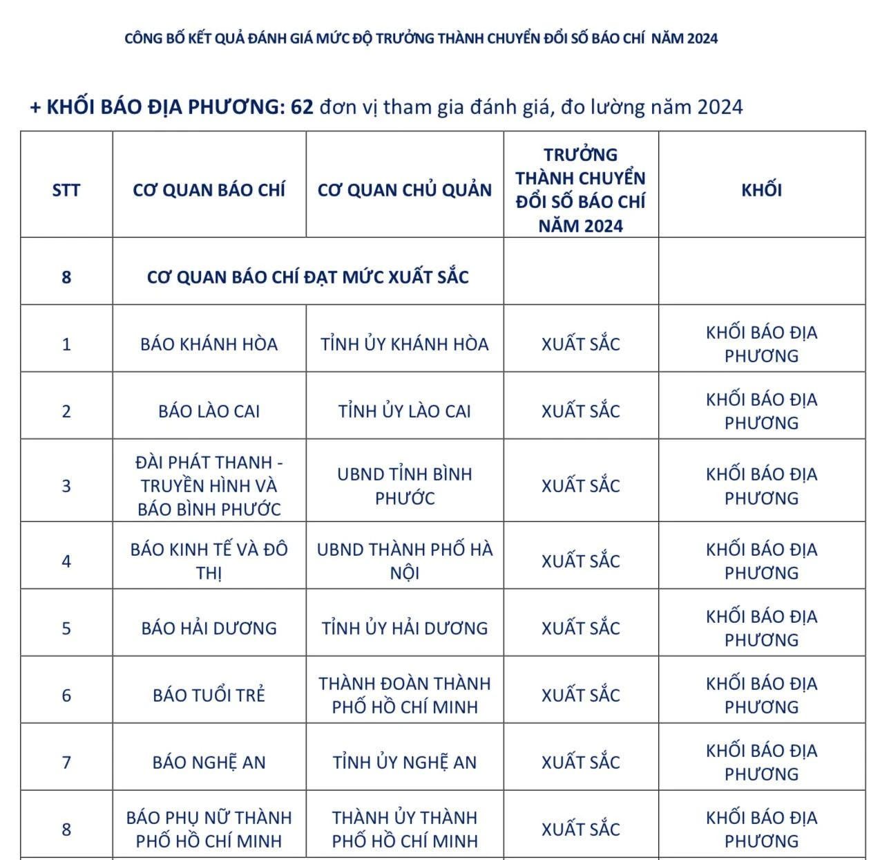 Cũng trong năm 2024, 3 cơ quan báo chí địa phương tiếp tục triển khai mạnh mẽ các kênh thông tin trên mạng xã hội, phát triển sản phẩm báo chí số chất lượng cao, đổi mới hiệu quả trải nghiệm của độc giả.