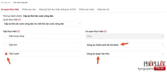 Chọn lý do cần cấp lại thẻ căn cước công dân. Ảnh: MINH HOÀNG