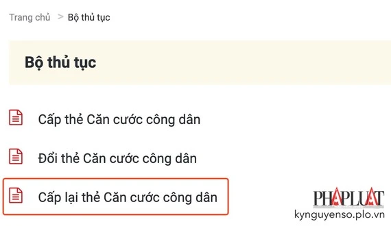 Chọn thủ tục cấp lại thẻ căn cước công dân. Ảnh: MINH HOÀNG