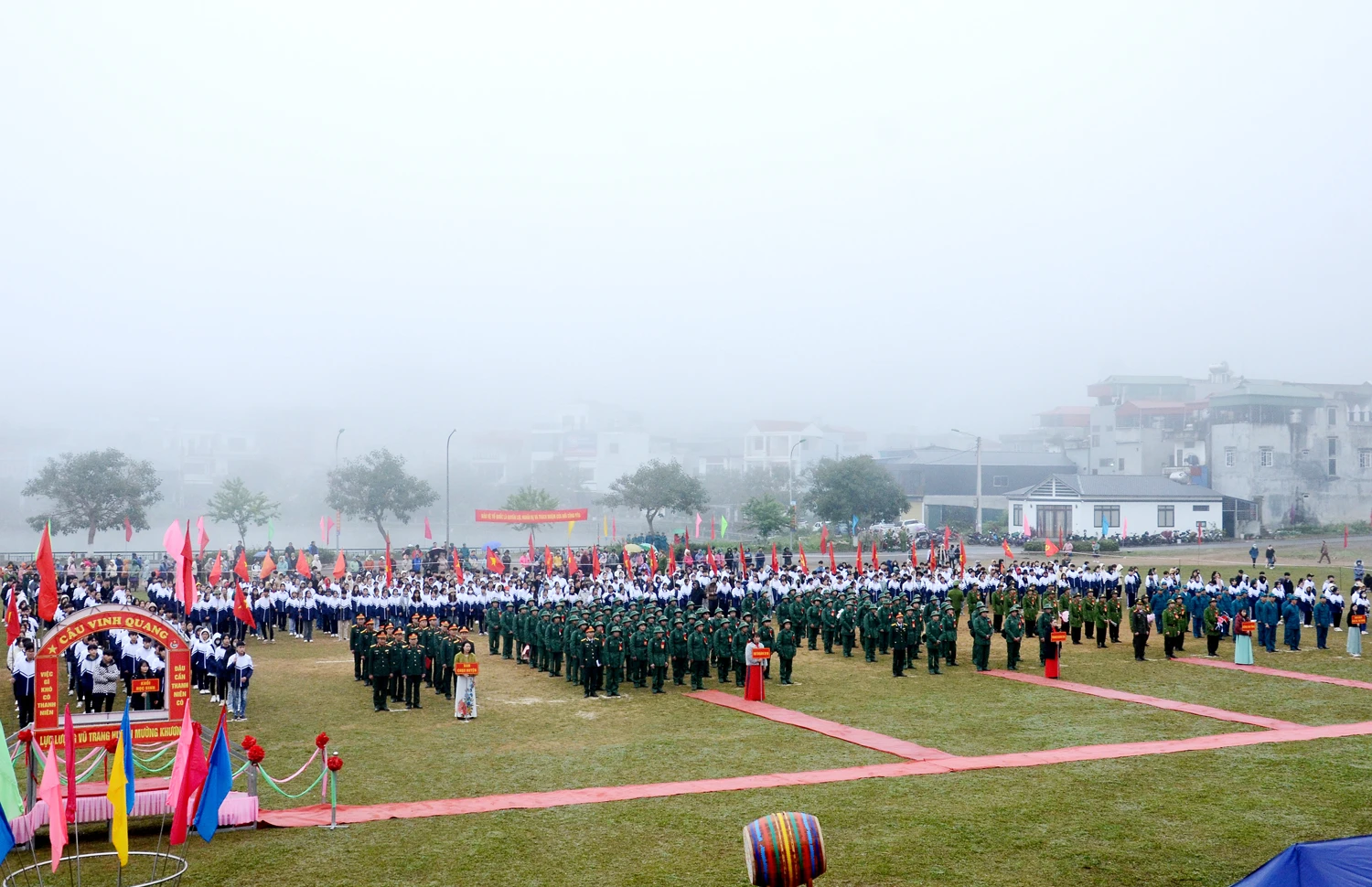Sáng 27/2, tại huyện Mường Khương có mưa nhỏ, sương mù bao phủ bởi không khí lạnh tăng cường nhưng tại ngày hội tòng quân, các chiến sĩ mới đều vui tươi, phấn khởi lên đường nhập ngũ để thực hiện nghĩa vụ thiêng liêng với Tổ quốc.