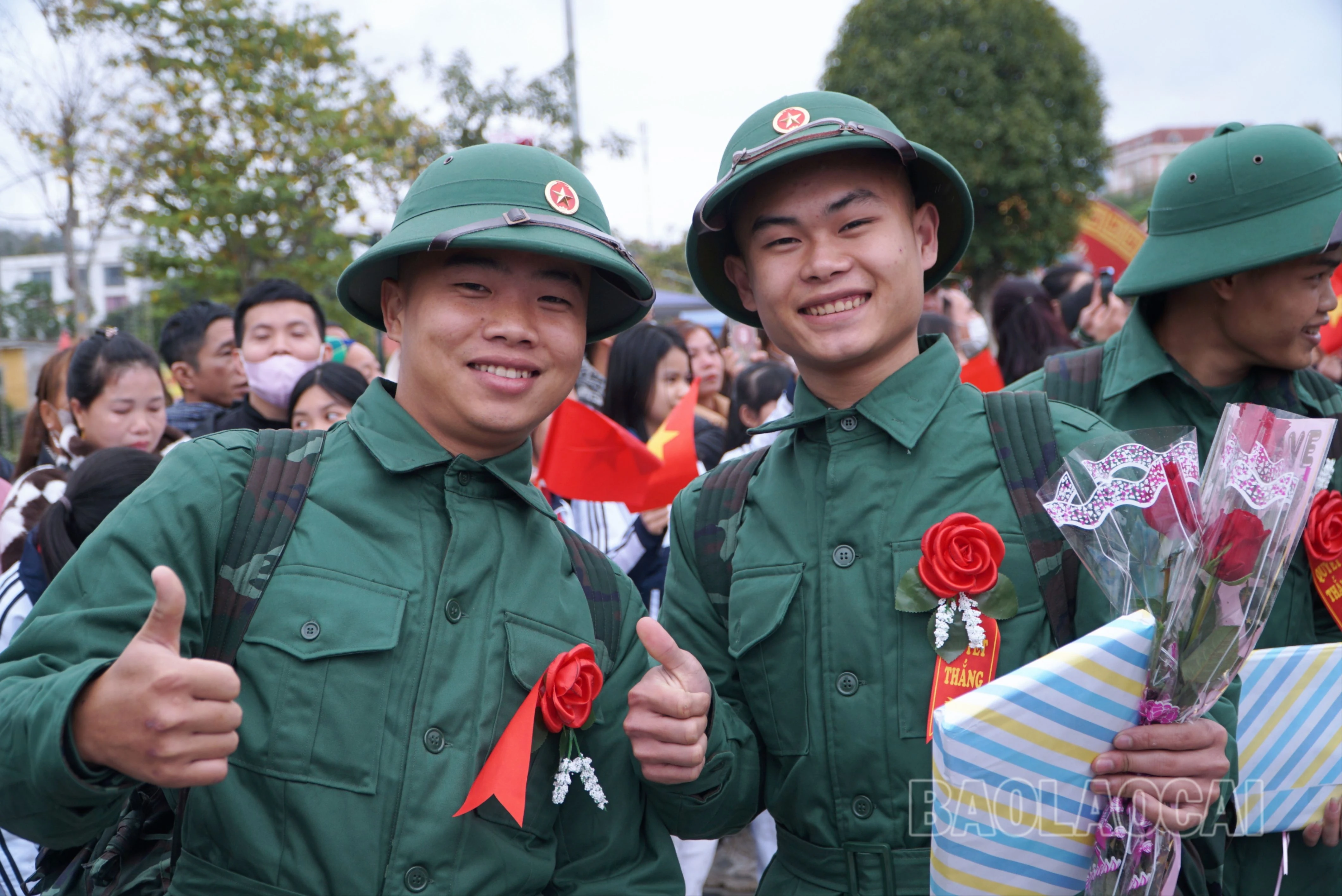 Sáng 27/2, hòa chung không khí của ngày hội giao, nhận quân, hơn 100 tân binh của huyện Bảo Thắng sôi nổi, hăng hái lên đường nhập ngũ.