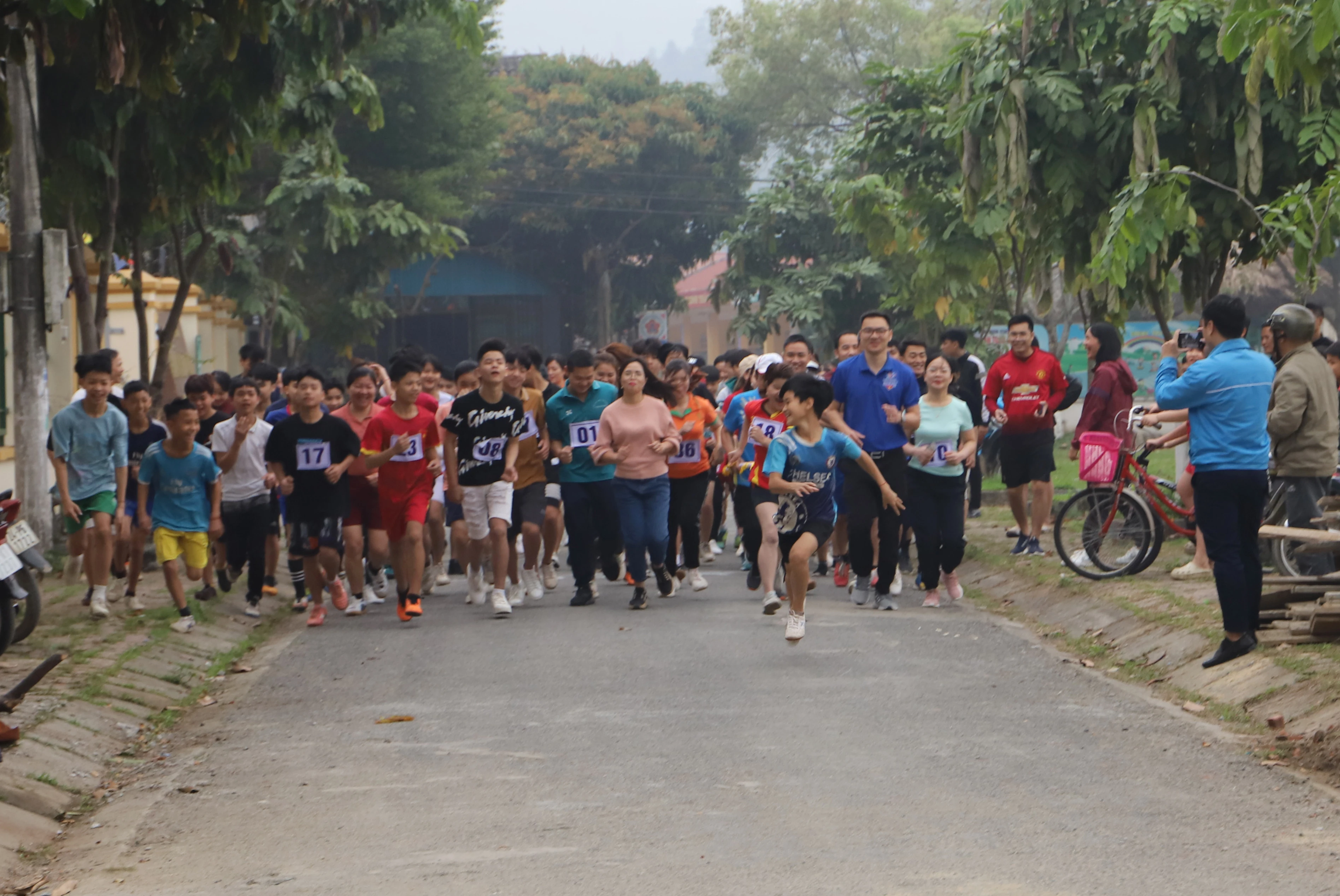 Sau lễ phát động, các đại biểu đã chạy đồng hành 1 km quanh sân vận động xã để hưởng ứng Ngày chạy Olympic vì sức khỏe toàn dân (ảnh dưới).