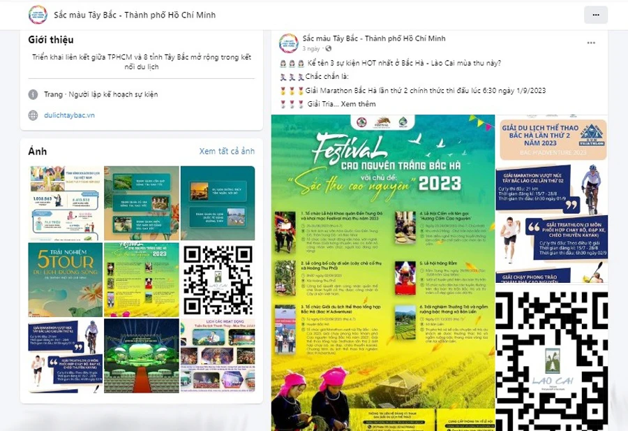 Fanpage https://www.facebook.com/dulic... Sắc màu Tây Bắc - Thành phố Hồ Chí Minh quảng bá hoạt động du lịch trong các tháng cuối năm 2023.