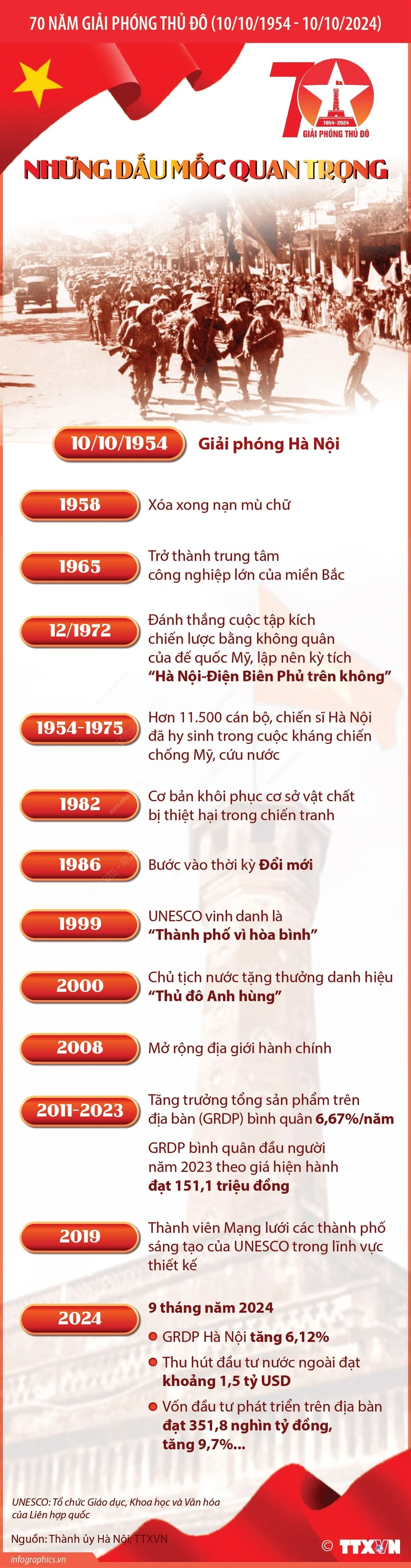 Lịch sử của Thủ đô Hà Nội luôn gắn liền với lịch sử đấu tranh giải phóng dân tộc cũng như công cuộc xây dựng, kiến thiết đất nước ngày nay. 70 năm qua, Hà Nội đã vươn lên trở thành một trong những đô thị lớn của khu vực Đông Nam Á, với tốc độ tăng trưởng kinh tế nhanh, bền vững, thực sự là Thủ đô nghìn năm văn hiến, nơi lắng đọng hào khí Thăng Long, hồn thiêng sông núi, nơi kết tinh và tỏa sáng trí tuệ Việt Nam.