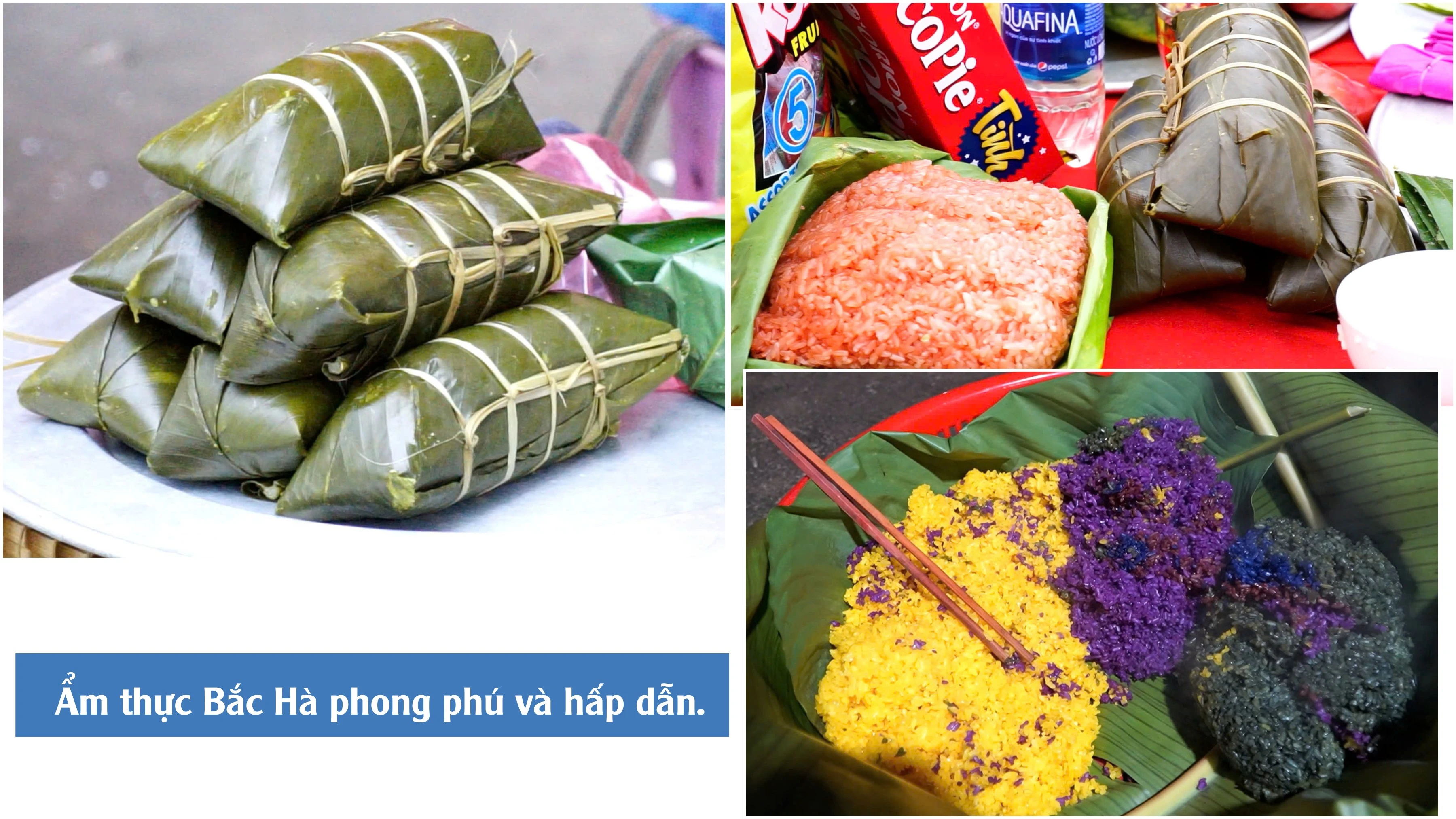 Hòa với không gian nghi ngút khói và mùi thơm của nước dùng, của phở, của thắng cố… sẽ bắt gặp những nụ cười tươi của các bà, các mẹ bên các chõ xôi, địu xôi rực rỡ sắc màu. Xôi ngũ sắc của đồng bào Tày, Nùng được nhuộm hoàn toàn từ lá rừng tự nhiên: đỏ, vàng, tím, xanh, trắng - năm màu hòa quyện như chính núi rừng Bắc Hà. Đặc biệt, xôi vừng đen mang hương vị rất riêng. Hạt xôi dẻo, quyện vị bùi béo của vừng đen giã nhuyễn, ăn trong cái lạnh mùa đông - xuân càng thêm hấp dẫn. Đó là thứ xôi ăn no mà vẫn muốn ăn thêm, ăn rồi lại nhớ.