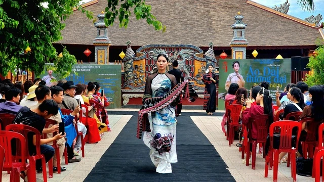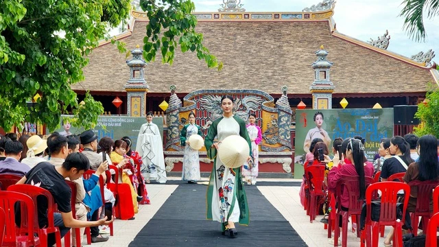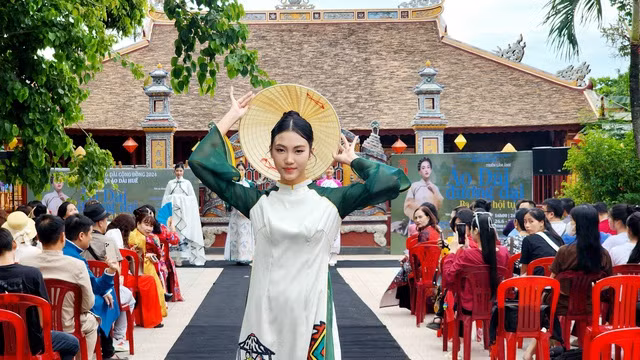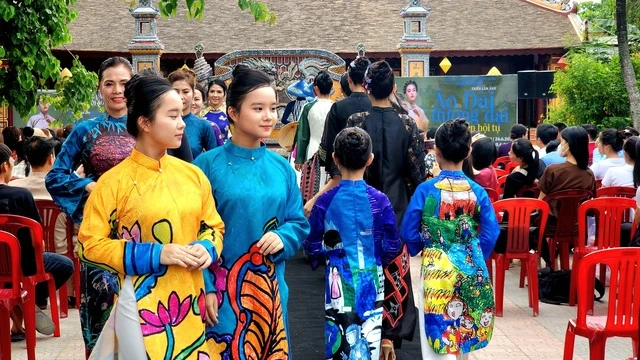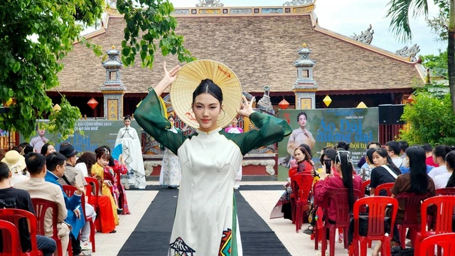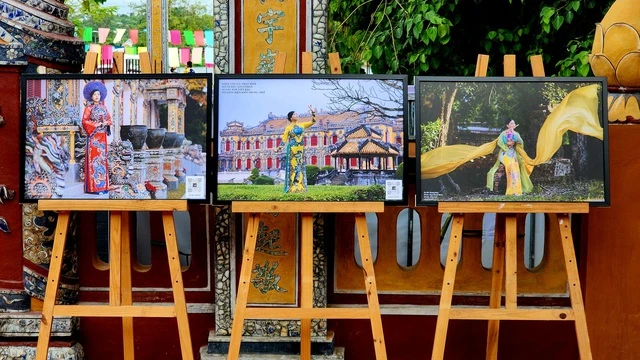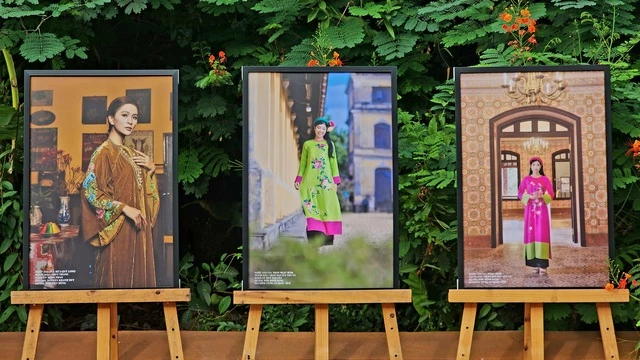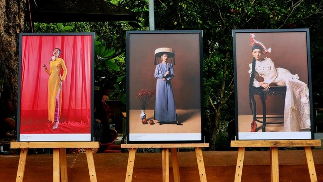 Triển lãm ảnh với chủ đề "Áo dài đương đại - Ba miền hội tụ" được tổ chức tại Đình làng Kim Long (phường Kim Long, TP Huế).