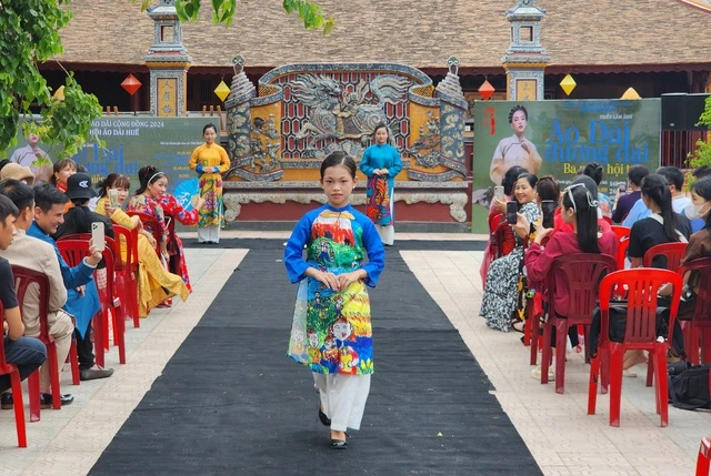 Trong khuôn khổ buổi triển lãm, người dân và du khách cũng được chiêm ngưỡng phần trình diễn thời trang áo dài trích đoạn các bộ sưu tập lấy cảm hứng từ văn hóa làng nghề xứ Huế của các NTK: Nguyễn Trí Long, Urban sketcher Hà Nội, Viết Bảo và Về Miền Hương Ngự Agency.