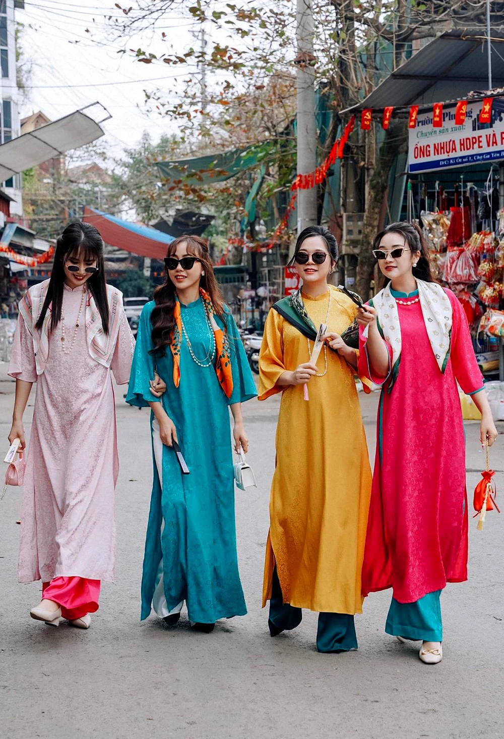 Áo dài xuống phố đón xuân