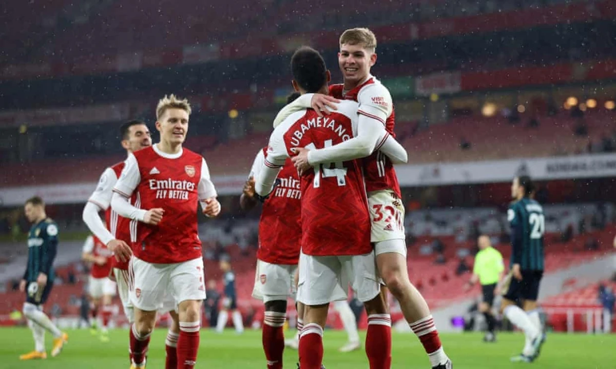Thủ môn Illan Meslier mắc sai lầm khi xử lý quá chần chừ sau đường chuyền về của đồng đội rồi phạm lỗi với Bukayo Saka, gây ra quả phạt đền ở phút 39. Pierre-Emerick Aubameyang dễ dàng ghi bàn trên chấm 11m, qua đó cán mốc 200 bàn thắng ở cấp độ CLB.