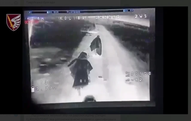 Ảnh cắt từ video do Lữ đoàn tấn công đường không số 79 của Ukraine công bố ngày 21/8 cho thấy một cuộc tấn công bằng thiết bị bay không người lái FPV liều chết nhằm vào bộ binh Nga đang di chuyển vào ban đêm trong khu vực Donetsk-Kostyantynivka. Ảnh: Kyiv Post