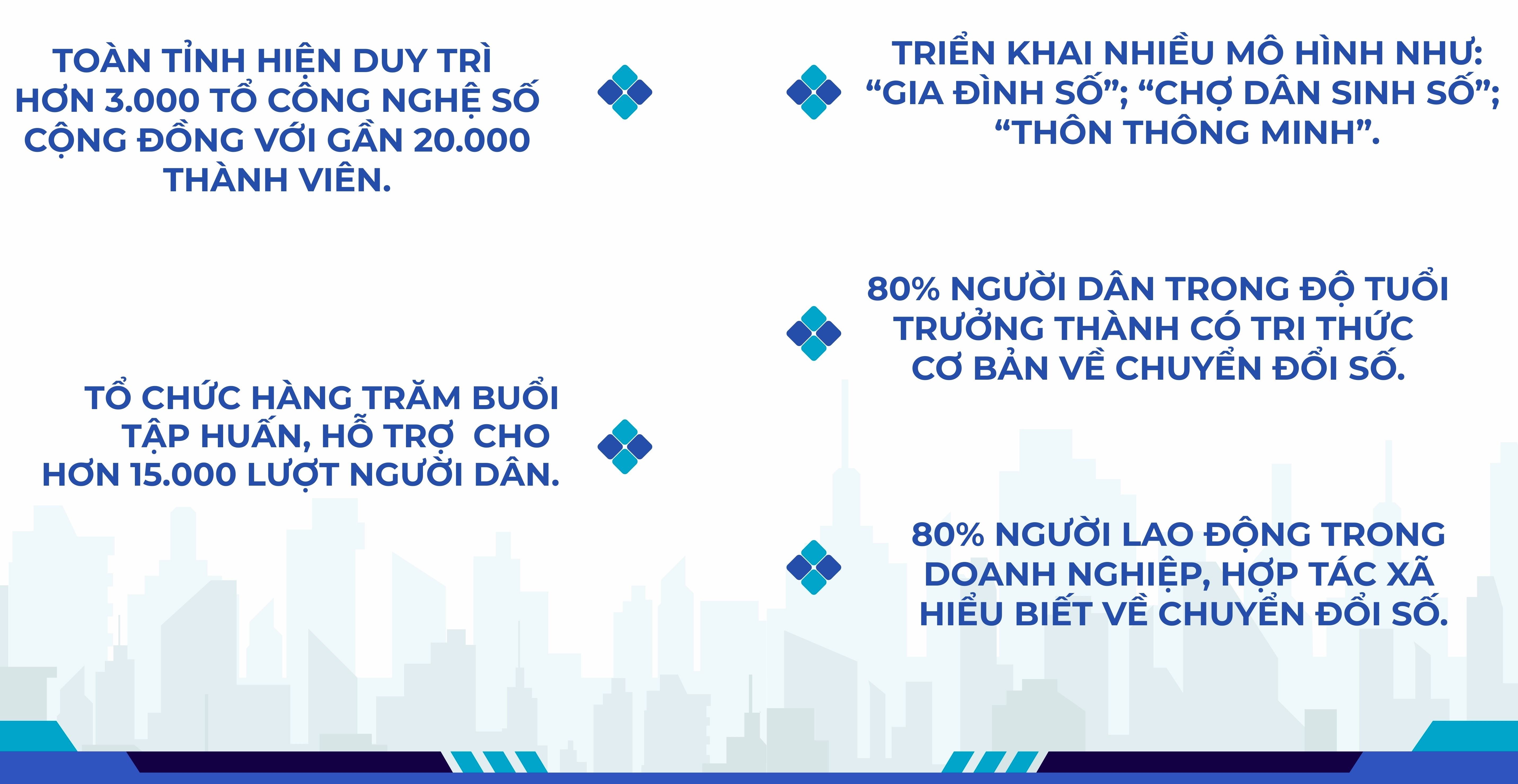 Để phong trào “Bình dân học vụ số” phát huy hiệu quả bền vững, việc củng cố và nâng cao năng lực cho các Tổ công nghệ số cộng đồng được xem là yếu tố then chốt. Đồng thời, các mô hình “thôn, bản số”, “gia đình số” hay “chợ dân sinh số” cần tiếp tục được hoàn thiện và nhân rộng theo hướng phù hợp với điều kiện thực tế của từng địa phương và nhóm đối tượng. Phổ cập kỹ năng số mới chỉ là bước khởi đầu; để chuyển đổi số thực sự là động lực phát triển, tỉnh sẽ tập trung hoàn thiện hệ sinh thái số và xây dựng hệ thống dữ liệu số đồng bộ - nguồn tài nguyên chiến lược trong giai đoạn tiếp theo.