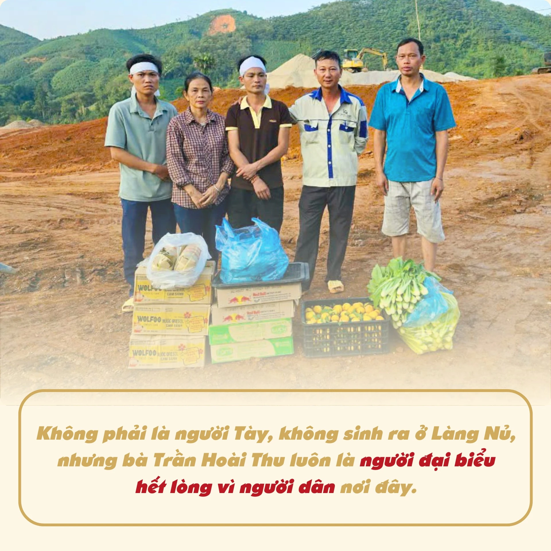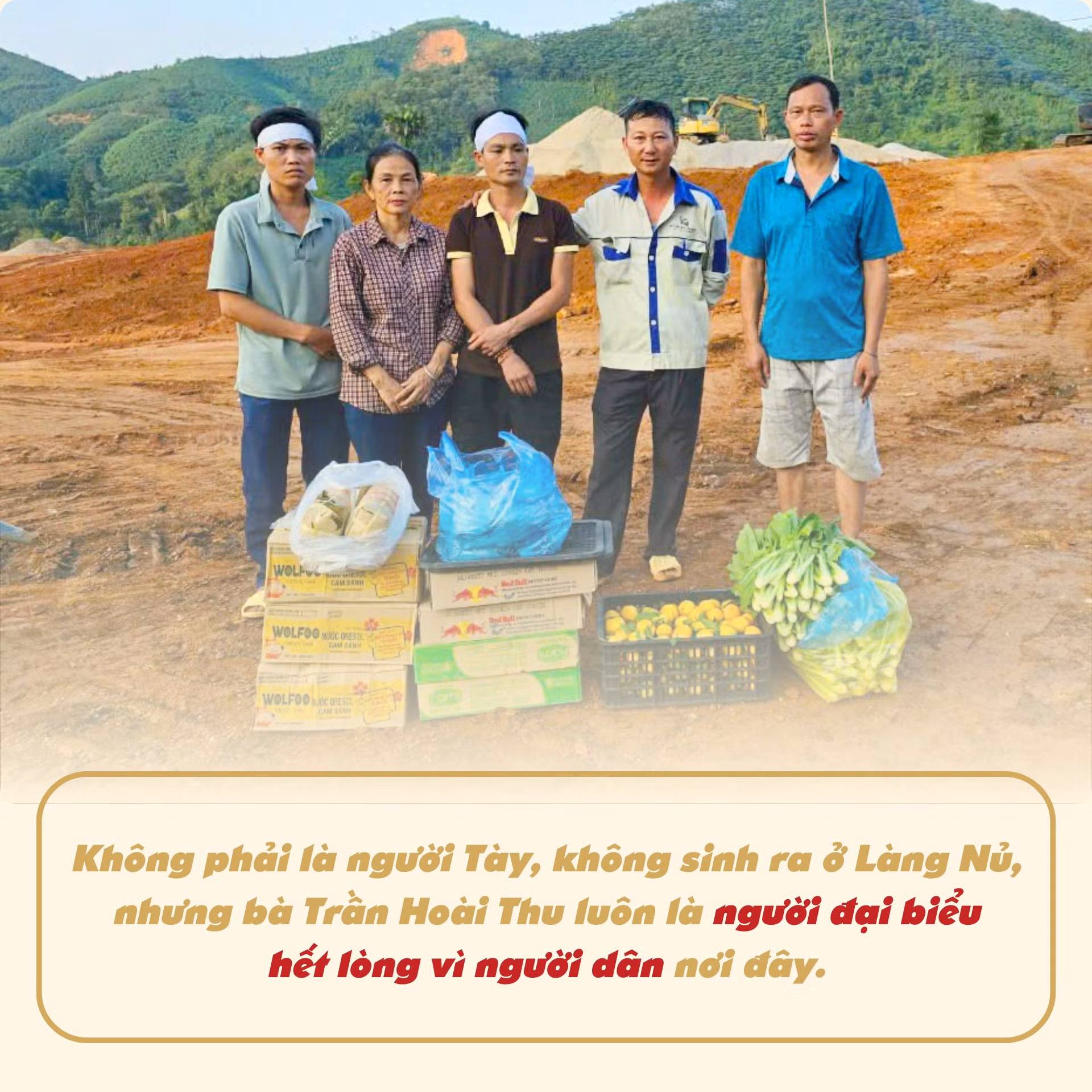 Những ngày các lực lượng về Làng Nủ giúp người dân tìm kiếm người bị mất tích, có rất nhiều đoàn thiện nguyện mang theo hàng cứu trợ về Làng Nủ. Bà Thu cùng với bà con vừa tiếp nhận hàng ủng hộ, cấp phát cho bà con đang bị thiên tai, vừa giám sát công tác cứu trợ sao cho đúng đối tượng.