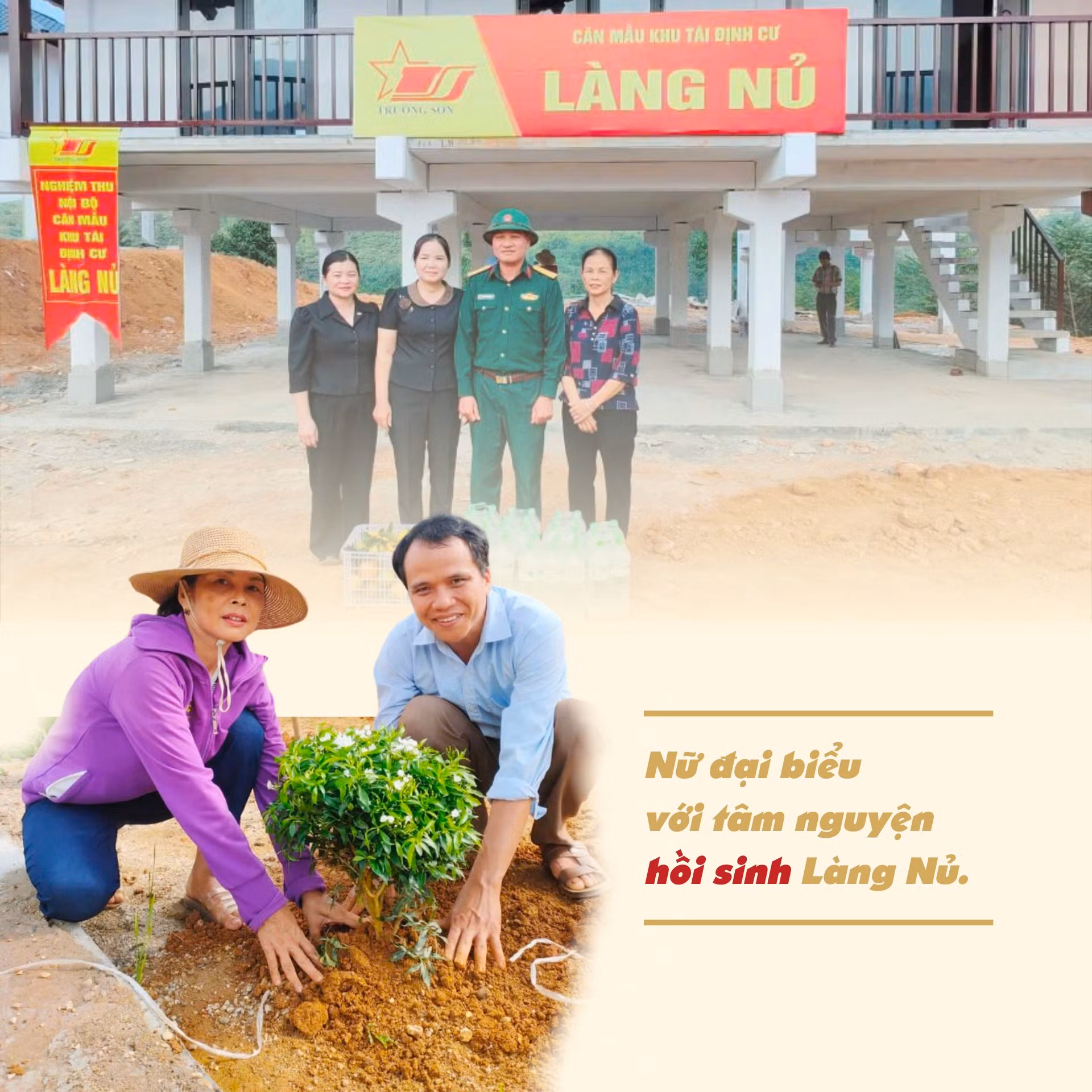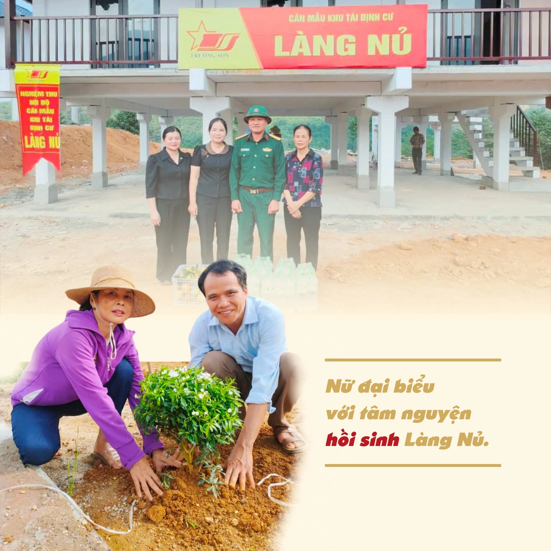 Nhìn khu Làng Nủ mới đang được xây dựng, lá cờ đỏ sao vàng tung bay trong nắng, bà Trần Hoài Thu bảo: Tôi nghe các cụ già kể lại tên Làng Nủ có nghĩa là ngôi làng đầy đủ, ấm no, hạnh phúc. Vậy là đến nay, nhờ ơn Đảng, Nhà nước và sự quan tâm của các tổ chức, cá nhân, bà con bị thiên tai ở Làng Nủ đã có nơi ở mới an toàn. Hôm thôn tổ chức bốc thăm chọn ngôi nhà mới, bà con mừng lắm. Mừng cho bà con có nhà mới nhưng tôi vẫn chưa thể yên tâm vì vừa qua ruộng đồng của nhiều hộ đã bị vùi lấp, nương đồi bị sạt lở, trong những ngày tới bà con biết sống ra sao?
