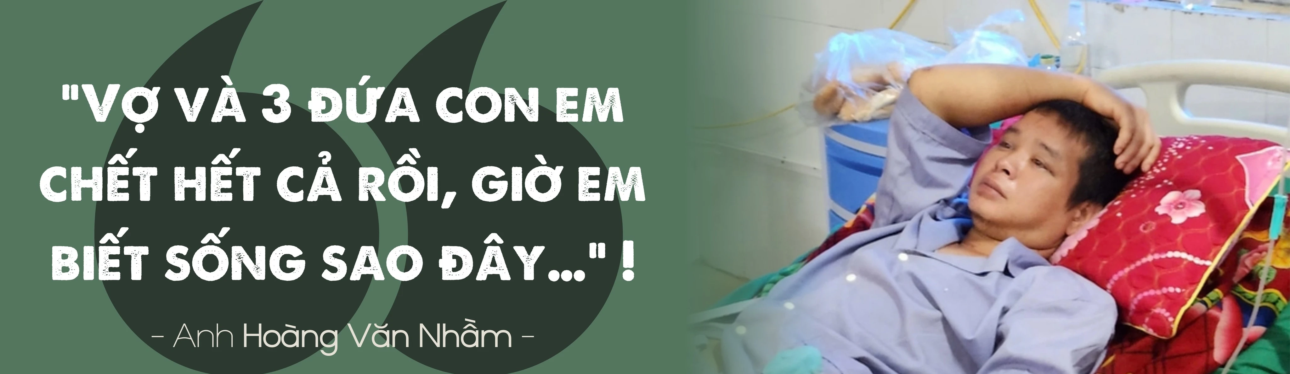 May mắn thoát chết trong trận lũ quét kinh hoàng, nhưng anh Hoàng Văn Nhầm (sinh năm 1998) bị thương rất nặng. Lúc chợt tỉnh tỉnh, người đầu tiên anh hỏi là vợ và các con. Nhưng khi nhận được câu trả lời, nước mắt anh cứ ứa ra, chảy dài trên gò mà. Rồi anh bật khóc nức nở.