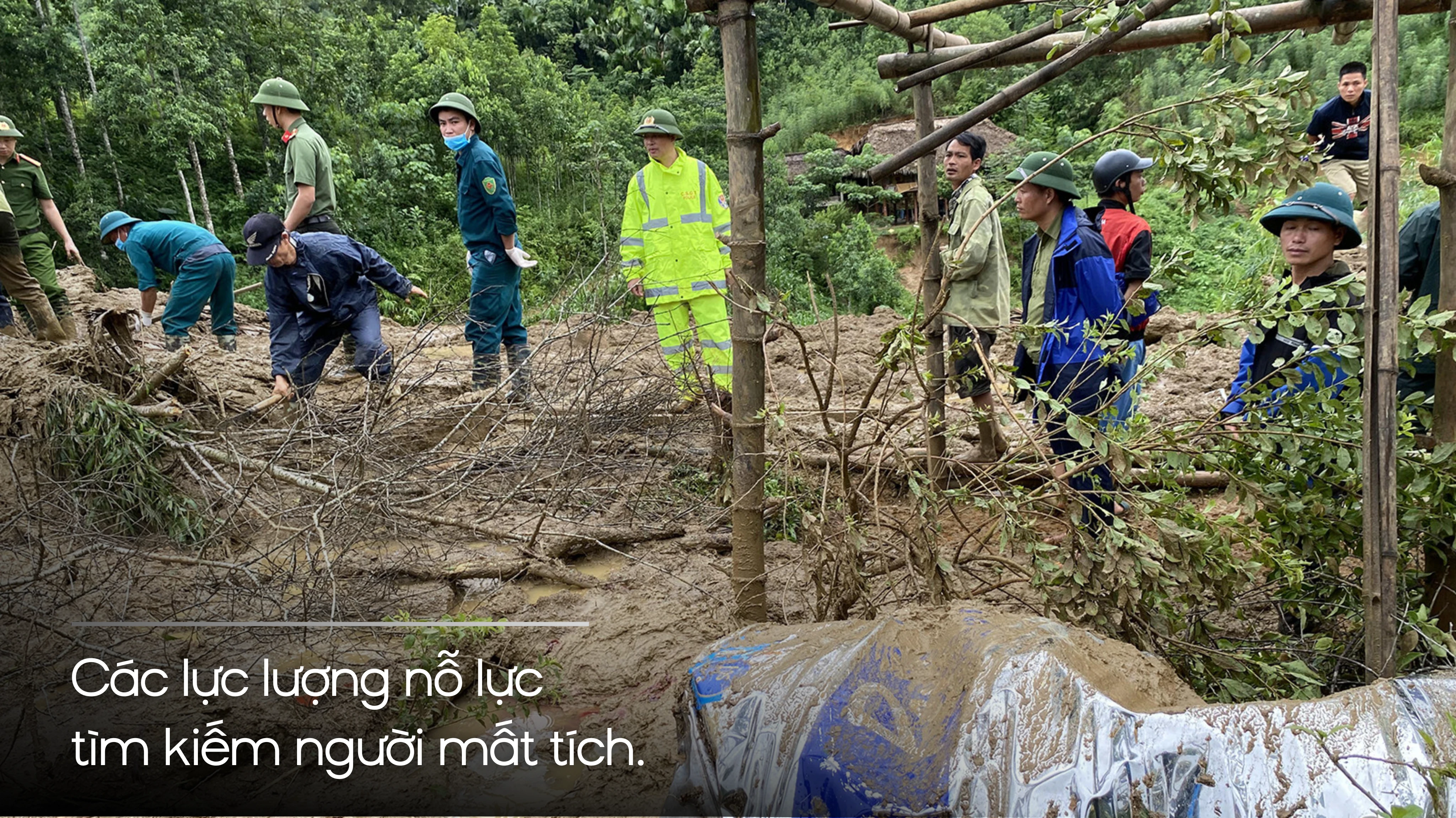 Ngoài lực lượng quân đội, công an chính quy, tại nơi xảy ra lũ quét còn có hàng chục người dân và lực lượng tại chỗ tham gia cứu nạn. Ngay trong buổi chiều 10/9, các lực lượng cứu hộ đã nỗ lực tìm kiếm được thêm 7 nạn nhân. Trời vẫn tiếp tục đổ mưa, khiến công tác tìm kiếm nạn nhân thêm bội phần khó khăn.