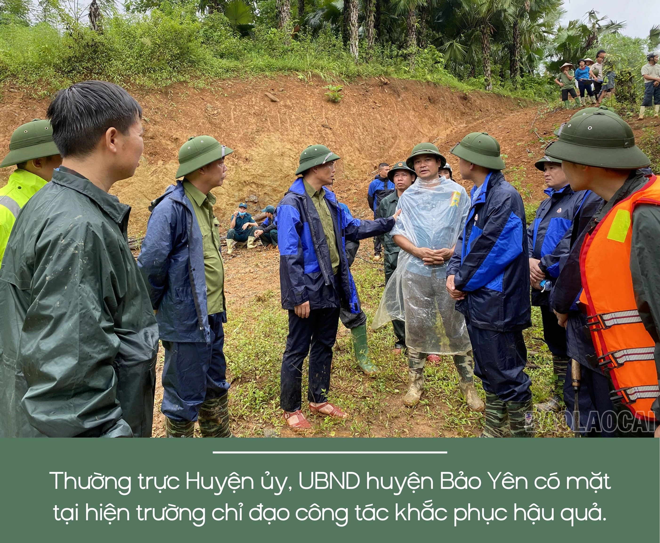 Sau khi có thông tin vụ lũ quét, sát lở đất nghiêm trọng tại thôn Làng Nủ, Thường trực Huyện ủy, UBND huyện Bảo Yên đã huy động khẩn cấp các lực lượng quân sự, công an nhanh chóng tiếp cận hiện trường, nỗ lực tìm kiếm, cứu sống nạn nhân nào còn có hy vọng.
