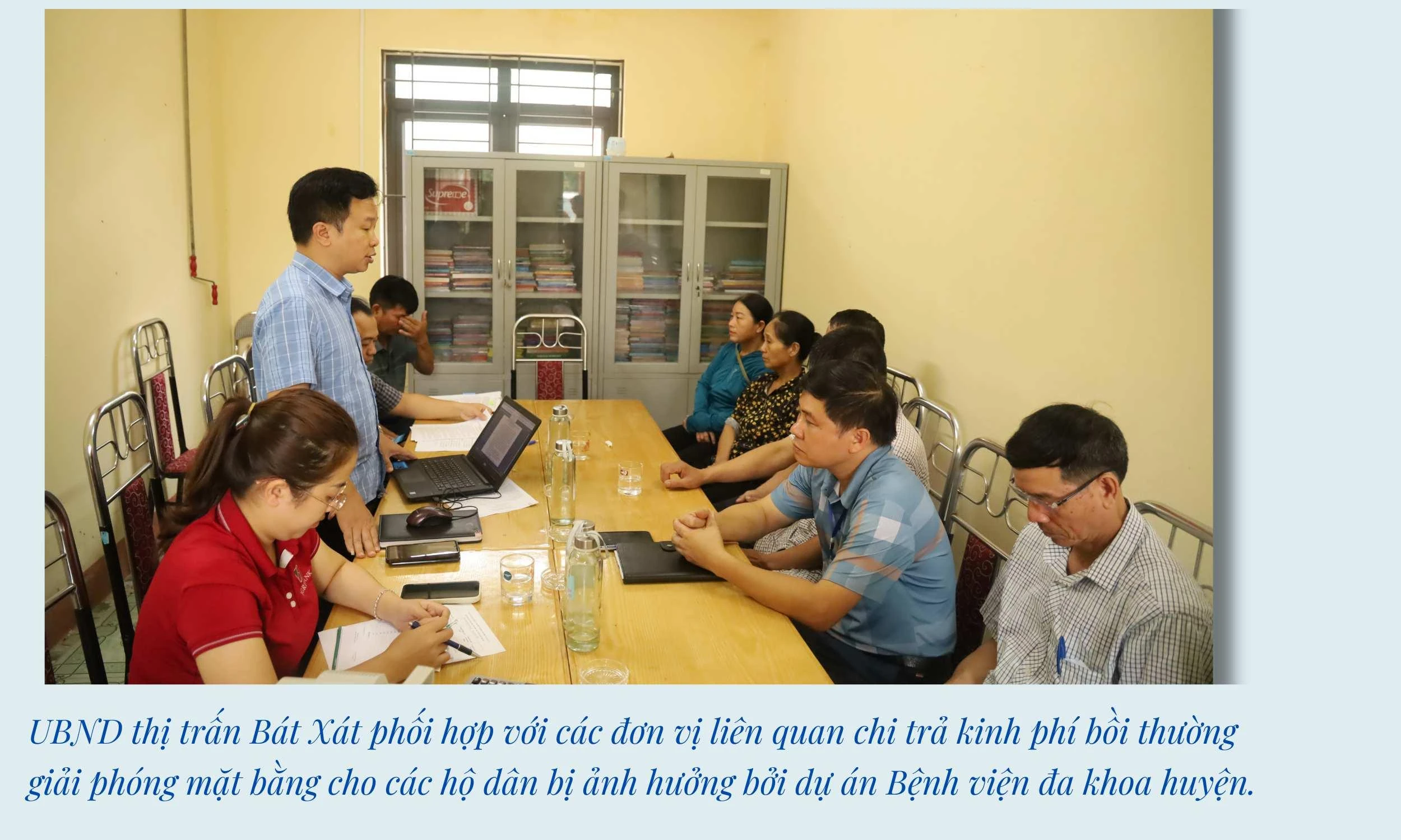 Như tại Dự án kết nối cầu Làng Giàng - Quốc lộ 70, dự án có vai trò quan trọng tạo động lực thúc đẩy phát triển kinh tế - xã hội của địa phương nói riêng và của tỉnh nói chung. Hơn 200 hộ bị ảnh hưởng với 46 ha phải giải phóng mặt bằng. Đến nay, tiến độ giải phóng mặt bằng đã đạt 90%. Quá trình thực hiện cũng phát sinh nhiều vướng mắc, vì vậy không kể ngày nghỉ, ngày lễ, Thường trực Huyện ủy, UBND huyện thường xuyên tổ chức các đoàn công tác gặp gỡ, lắng nghe ý kiến của Nhân dân, kịp thời tháo gỡ.