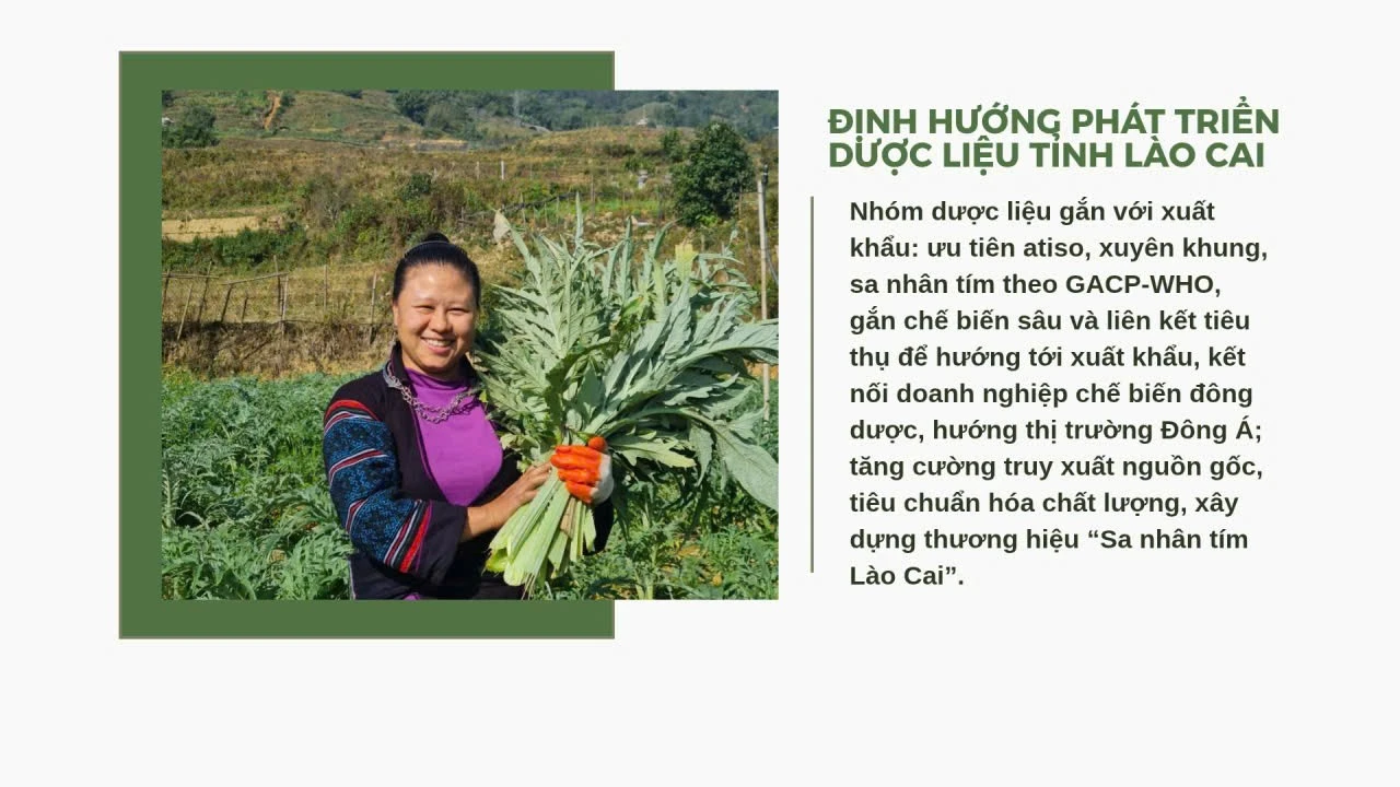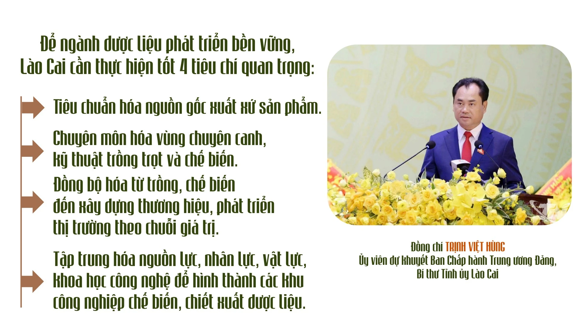 Với mục tiêu rõ ràng, sự vào cuộc quyết liệt của cấp ủy, chính quyền, sự các cấp, sự đồng hành của nhà khoa học và doanh nghiệp, ngành dược liệu hoàn toàn có thể trở thành một trụ cột kinh tế của Lào Cai, góp phần nâng cao đời sống người dân vùng cao và khẳng định vị thế trên bản đồ dược liệu quốc gia và thế giới.