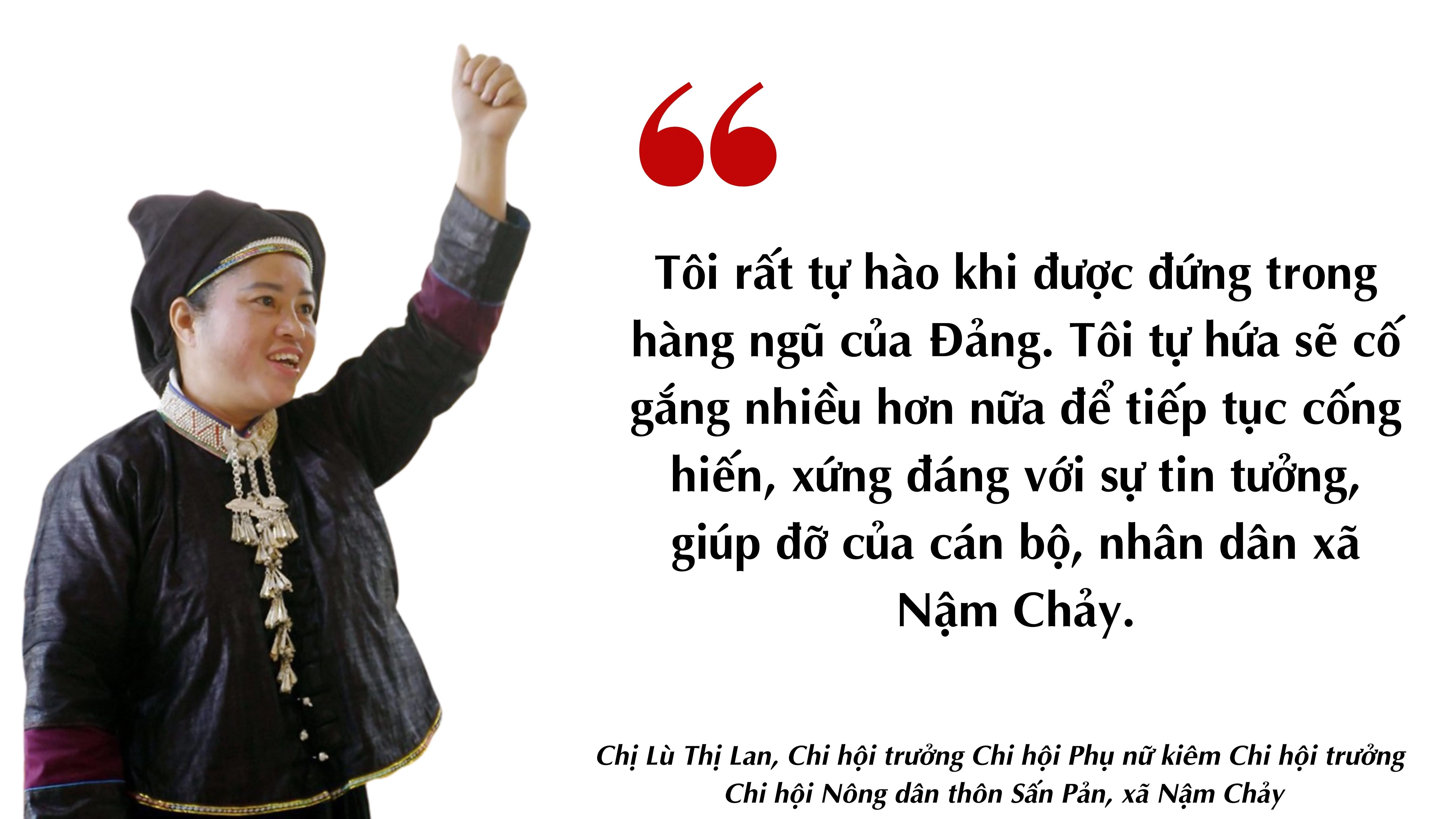 Ông Ma Chiến Phúc, Bí thư Đảng ủy xã Nậm Chảy khẳng định: Nhiều đảng viên nữ đã trở thành “điểm tựa” góp phần quan trọng cùng cấp ủy, chính quyền địa phương triển khai hiệu quả các phong trào thi đua yêu nước, thực hiện thắng lợi nhiệm vụ chính trị ở cơ sở. Từ đó, đã đem đến nguồn sinh lực mới cho Đảng, góp phần nâng cao năng lực lãnh đạo, sức chiến đấu của tổ chức Đảng từ cơ sở, củng cố niềm tin của các tầng lớp nhân dân vào sự lãnh đạo, chỉ đạo của cấp ủy, chính quyền.