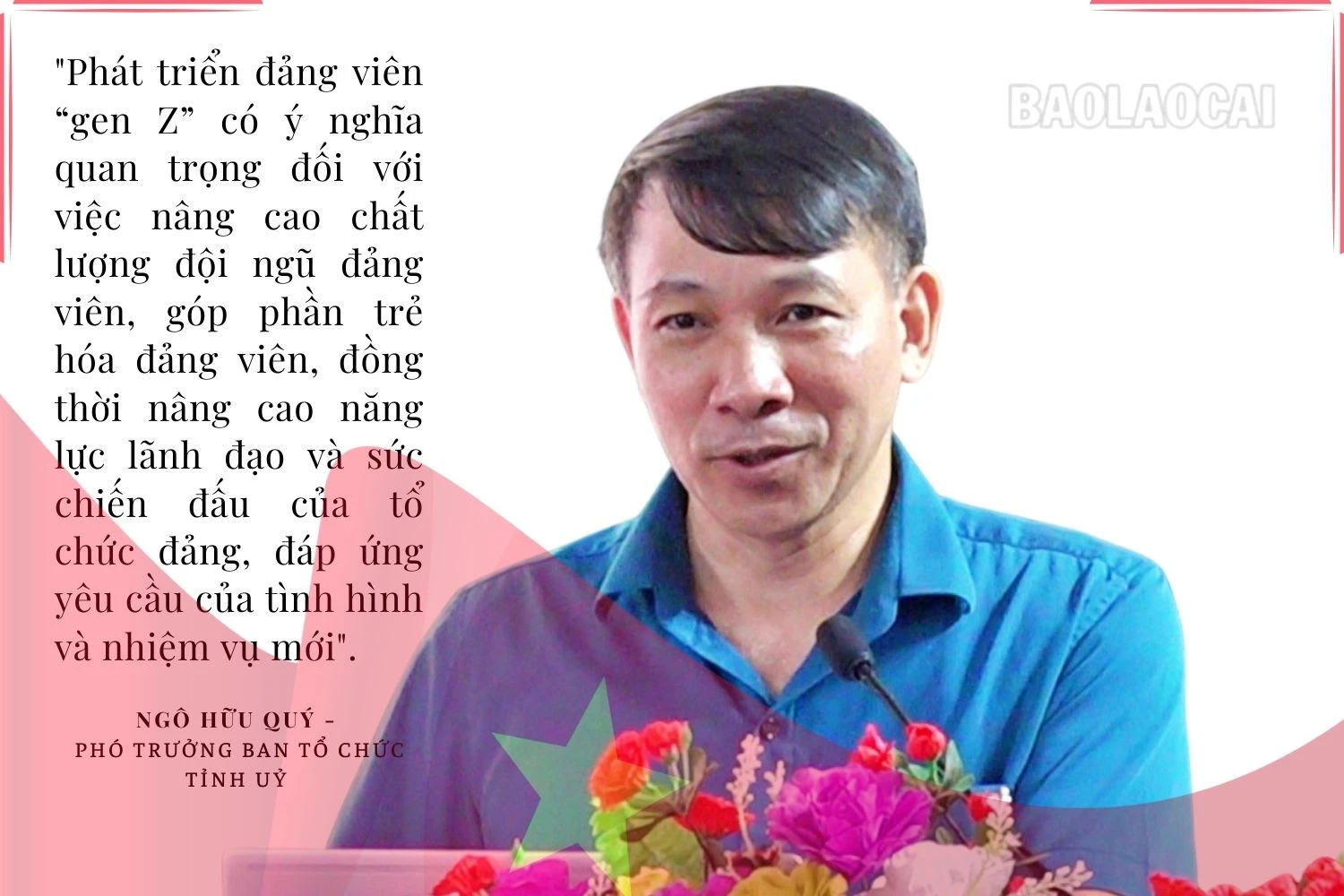 Theo đồng chí Ngô Hữu Quý, Phó Trưởng Ban Tổ chức Tỉnh ủy, đối với thế hệ “gen Z”, Lào Cai xác định không chạy theo số lượng mà quan tâm đến tìm nguồn chất lượng phát triển đảng viên. Giải pháp mà Lào Cai thực hiện để nâng cao chất lượng đảng viên “gen Z” là các cấp ủy lãnh đạo, chỉ đạo các đoàn thể phát hiện nguồn và giới thiệu phát triển đảng viên nói chung, trọng tâm là nhóm “gen Z” ở các trường THPT, các trường chuyên nghiệp trên địa bàn tỉnh và trong các doanh nghiệp ngoài khu vực nhà nước. Tăng cường giáo dục chính trị, tư tưởng cho đoàn viên, thanh niên, trong đó tập trung vào giáo dục chủ nghĩa Mác - Lênin, tư tưởng Hồ Chí Minh, giáo dục đạo đức, lối sống, truyền thống cách mạng, công cuộc đổi mới của Đảng… từ đó tạo động cơ phấn đấu vào Đảng đối với “gen Z”. Phát huy vai trò của các tổ chức, đoàn thể, hội đối với công tác phát triển đảng viên, kịp thời phát hiện những cá nhân ”gen Z” ưu tú đủ điều kiện để giới thiệu cho tổ chức đảng bồi dưỡng, kết nạp. Gắn công tác phát triển đảng viên với đẩy mạnh phát triển kinh tế, tạo việc làm và thu nhập ổn định ngay tại địa phương để đoàn viên, thanh niên, trong đó có các quần chúng ưu tú không phải đi làm xa, tạo nguồn phát triển đảng viên.