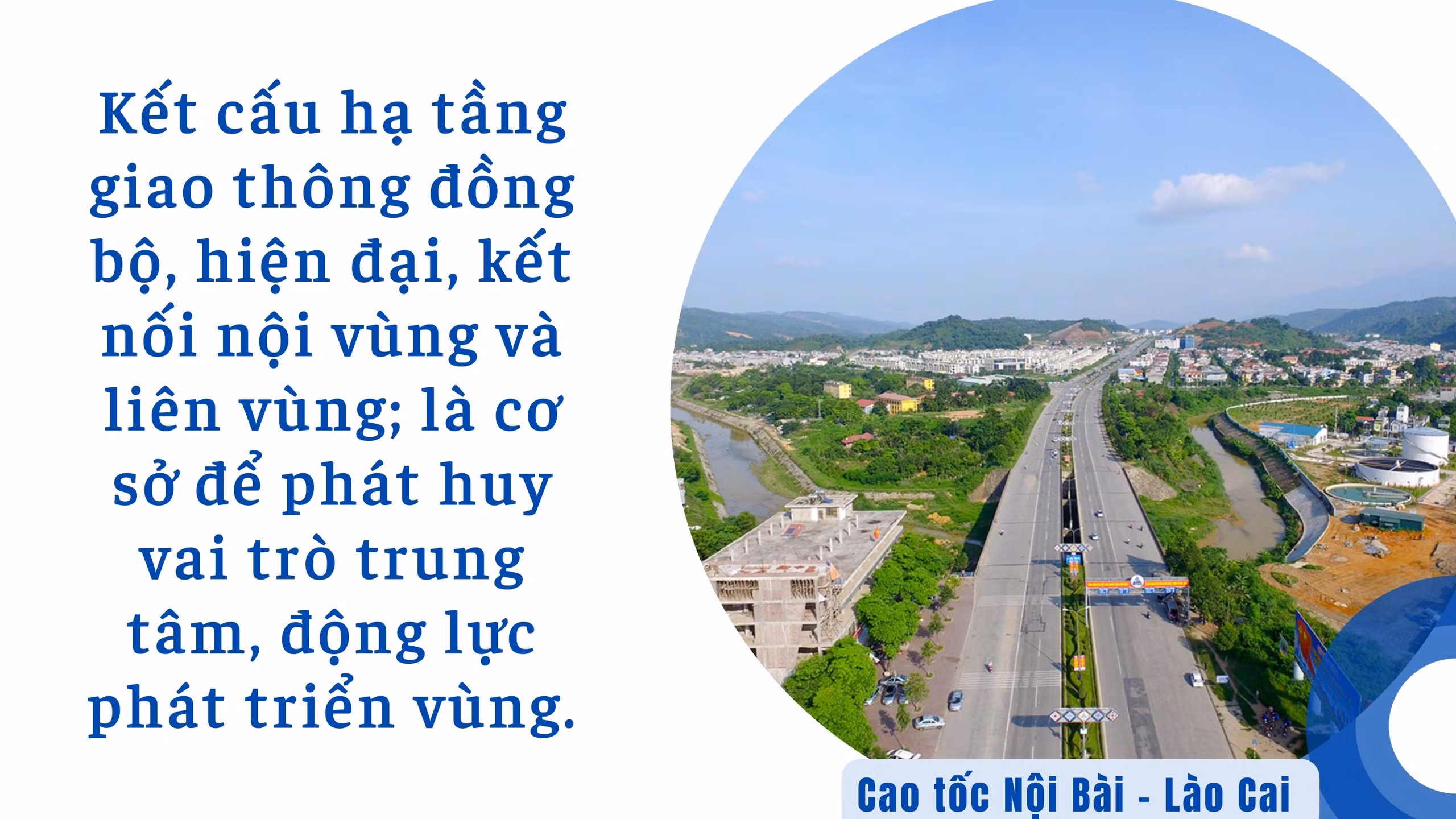Thu hút và sử dụng hiệu quả các nguồn vốn đầu tư từ các thành phần kinh tế cho phát triển kinh tế - xã hội, nhất là cho phát triển cơ sở hạ tầng và các ngành kinh tế có tiềm năng, lợi thế. Tăng cường liên kết, hợp tác với các tỉnh trong vùng Trung du và miền núi phía Bắc; các tỉnh đặt trong trục kết nối giao thông “dọc” và “ngang” và các địa phương khác trong cả nước. Kết hợp chặt chẽ phát triển kinh tế - xã hội với bảo đảm quốc phòng, an ninh, gắn với xây dựng và phát triển văn hóa, con người Lào Cai đáp ứng yêu cầu hội nhập và phát triển bền vững…