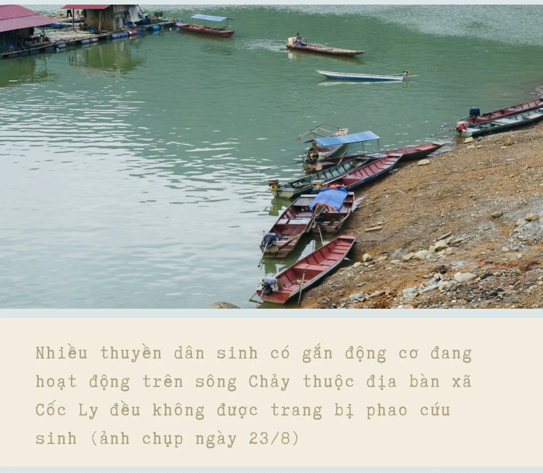Có mặt tại bến đò ngang nằm ven lòng hồ thủy điện xã Cốc Ly, thuộc địa phận xã Cốc Ly (huyện Bắc Hà) sáng 23/8 (ngày chợ phiên Cốc ly họp), chúng tôi rùng mình khi chứng kiến cảnh thuyền máy mang biển kiểm soát LK0231 vừa chở khách và hàng hóa từ xã Hoàng Thu Phố (Bắc Hà) cập bến. Chiếc thuyền sắt nhỏ với sức chở 12 người nhưng chủ phương tiện đã "nhồi nhét" hơn 20 người ngồi trên, trong đó có cả trẻ em và người già. Con thuyền này đã di chuyển qua quãng đường cả chục cây số trên sông Chảy. Nguy hiểm hơn là hầu hết người dân ngồi trên thuyền đều không mặc áo phao.