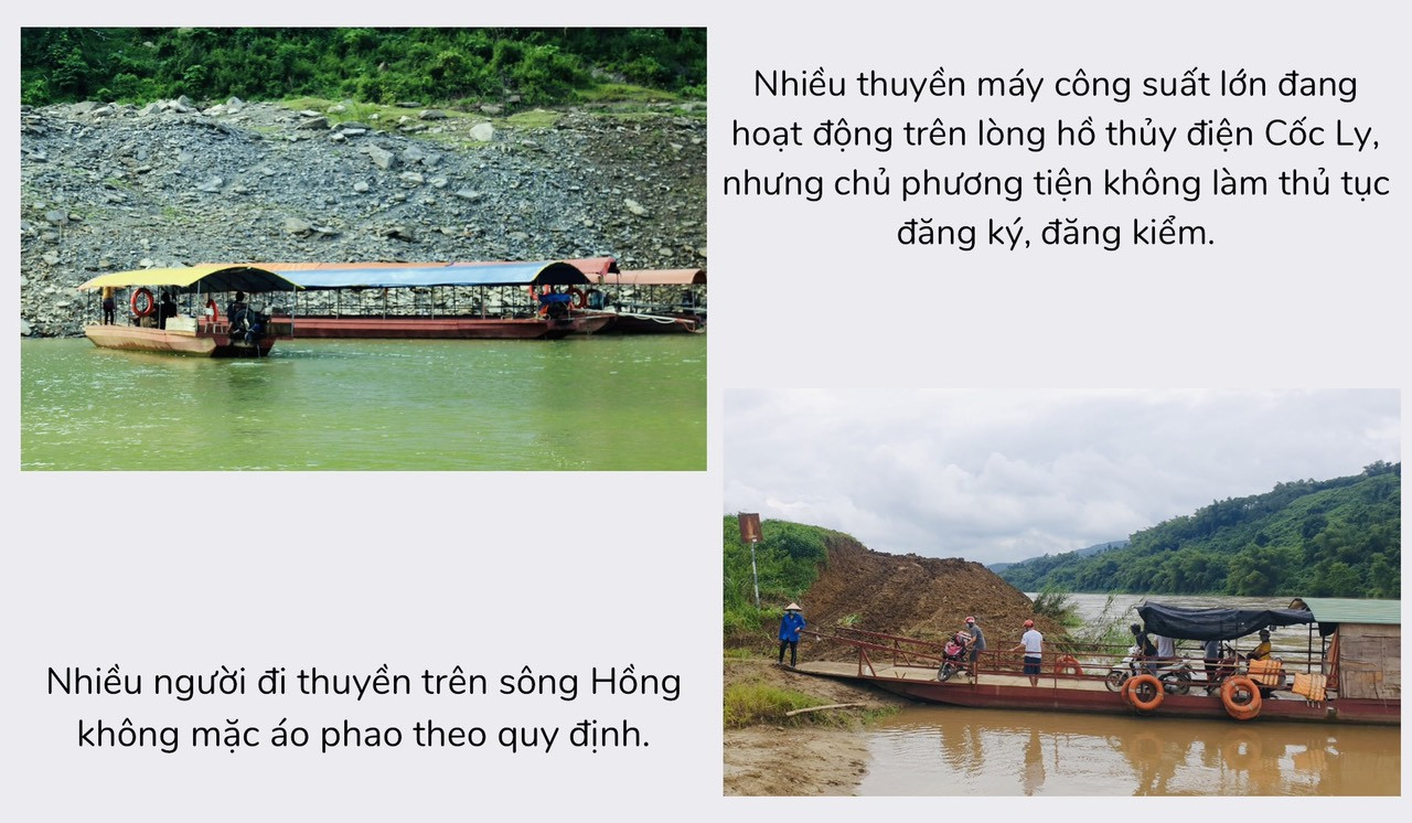 Theo Trung tá Đào Ngọc Toàn, Đội Cảnh sát giao thông đường thủy (Phòng Cảnh sát giao thông, Công an tỉnh), hiện hầu hết các phương tiện đường thủy hoạt động trên sông Chảy và hồ thủy điện Cốc Ly do người dân tự đóng để phục vụ nhu cầu đi lại và đánh bắt thủy sản. Bên cạnh đó, còn một số phương tiện tham gia vào lĩnh vực kinh doanh vận tải và hành khách nhưng chủ phương tiện cố tình không thực hiện đăng ký, đăng kiểm theo quy định. Đây là một trong những nguyên nhân tiềm ẩn nguy cơ cao xảy ra tai nạn đường thủy trên địa bàn.
