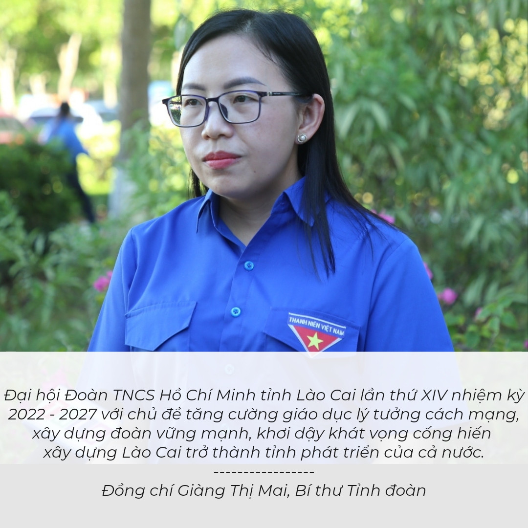 Đồng chí Giàng Thị Mai, Bí thư Tỉnh đoàn cho biết: Với chủ đề tăng cường giáo dục lý tưởng cách mạng, đạo đức, lối sống văn hóa cho thanh thiếu nhi; xây dựng đoàn vững mạnh; khơi dậy khát vọng xây dựng Lào Cai trở thành tỉnh phát triển khá của cả nước. Đại hội đã đề ra 12 chỉ tiêu trọng tâm; xác lập 2 khâu đột phá; 8 nhóm giải pháp; 5 đề án trọng điểm triển khai công tác đoàn và phong trào thanh thiếu nhi nhiệm kỳ 2022 - 2027. Để phát huy sức mạnh của tuổi trẻ trong triển khai thực hiện Nghị quyết đại hội Đoàn TNCS Hồ Chí Minh tỉnh Lào Cai lần thứ XIV, Ban Thường vụ Tỉnh đoàn yêu cầu các cấp bộ đoàn bám sát nhiệm vụ chính trị địa phương gắn với triển khai nghị quyết đại hội đoàn. Đổi mới công tác tuyên truyền, giáo dục cho đoàn viên, thanh thiếu nhi với hình thức phong phú nhằm thu hút, giáo dục thế hệ trẻ có lối sống lành mạnh, có lý tưởng cách mạng, có đạo đức, chấp hành nghiêm pháp luật, cảnh giác trước âm mưu “diễn biến hòa bình” của các thế lực thù địch. Củng cố, xây dựng tổ chức đoàn vững mạnh, đủ sức đảm nhận vai trò nòng cốt trong phong trào thanh niên, đồng thời tích cực tham gia xây dựng Đảng, mở rộng mặt trận đoàn kết, tập hợp thanh niên; phát huy tốt vai trò trong tạo nguồn, giới thiệu đoàn viên ưu tú cho Đảng xem xét, kết nạp.
