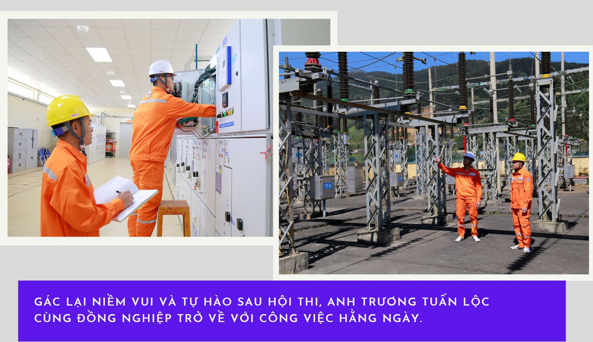 Gác lại niềm vui và tự hào sau hội thi, anh Trương Tuấn Lộc cùng đồng nghiệp trở về với công việc hằng ngày. Trong căn phòng nhỏ đặt cạnh trạm biến áp, ngay sát khu du lịch cáp treo Fansipan, những công nhân trong tổ thao tác lưu động luôn túc trực 24/24h. Trạm biến áp này có vai trò quan trọng, kết nối lưới điện Lào Cai - Lai Châu, đồng thời kết nối mạch vòng về Tằng Loỏng, không chỉ cung cấp điện cho các hoạt động kinh tế, xã hội khu vực Sa Pa, Bát Xát mà còn là một hướng dự phòng cho hệ thống điện thành phố Lào Cai.