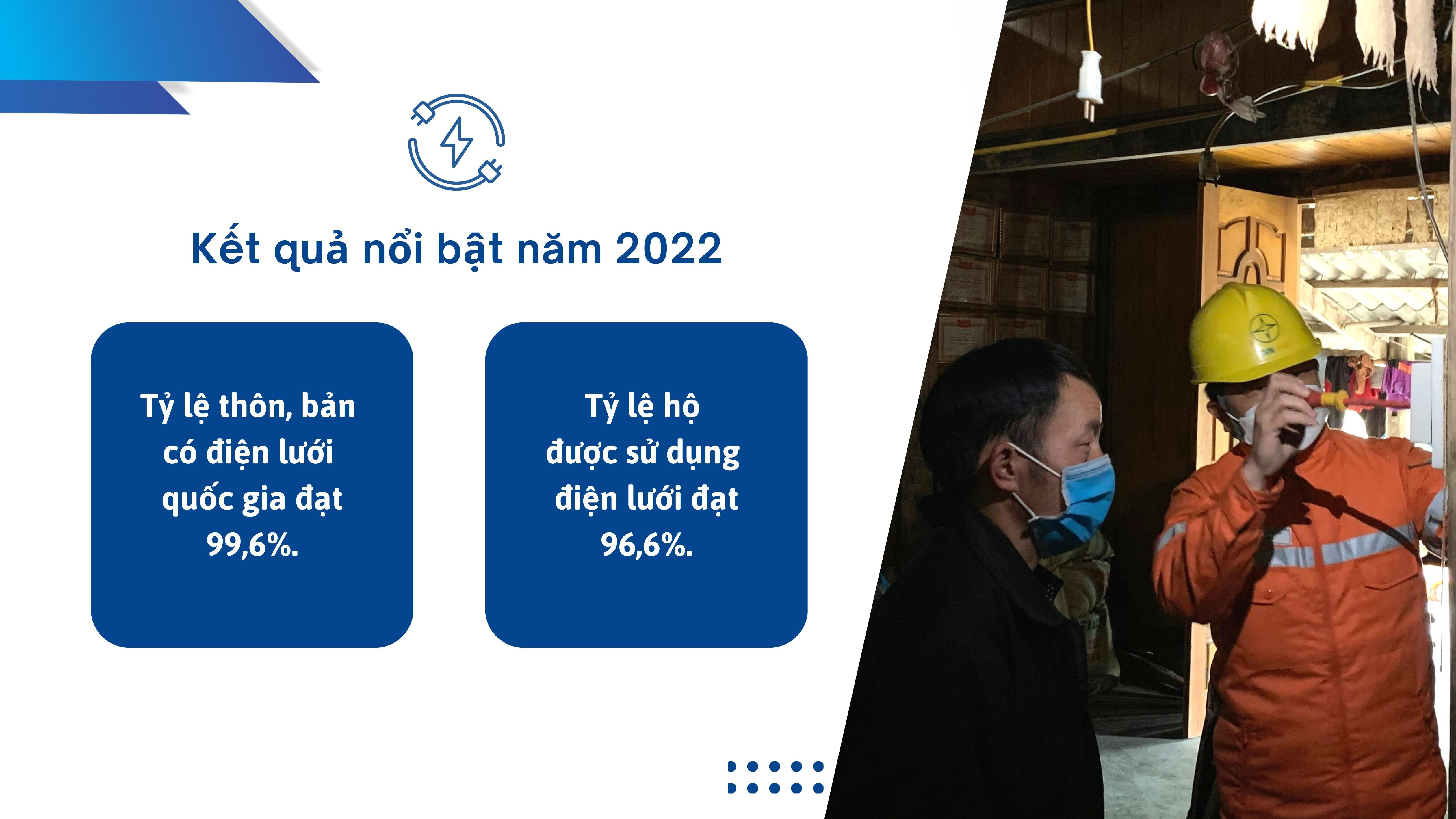 Ông Nguyễn Tuấn Anh, Trưởng Phòng Quản lý năng lượng, Sở Công Thương cho biết: Hết năm 2022, tại khu vực nông thôn, tỷ lệ thôn, bản có điện lưới quốc gia đạt 99,6% (tương ứng 1.174/1.179 thôn, bản); tỷ lệ hộ được sử dụng điện lưới đạt 96,6% (tương đương 121.070/125.348 hộ). Bằng các nguồn vốn đầu tư từ ngân sách tỉnh, vốn ngành điện và vốn xã hội hóa do các doanh nghiệp thủy điện đóng góp, điện lưới quốc gia đang “vươn” về các thôn, bản vùng xa, vùng cao, giải “cơn khát” điện lưới cho người dân.