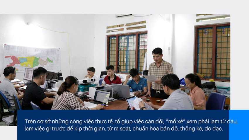 Phó Chủ tịch UBND huyện Bảo Yên Nguyễn Việt Hà cho biết: Trên cơ sở những công việc thực tế, tổ giúp việc cân đối, “mổ xẻ” xem phải làm từ đâu, làm việc gì trước để kịp thời gian, từ rà soát, chuẩn hóa bản đồ, thống kê, đo đạc. Những khó khăn, vướng mắc phát sinh đều được phân loại để giải quyết. Trong tổ giúp việc phân công cán bộ phụ trách từng thôn.