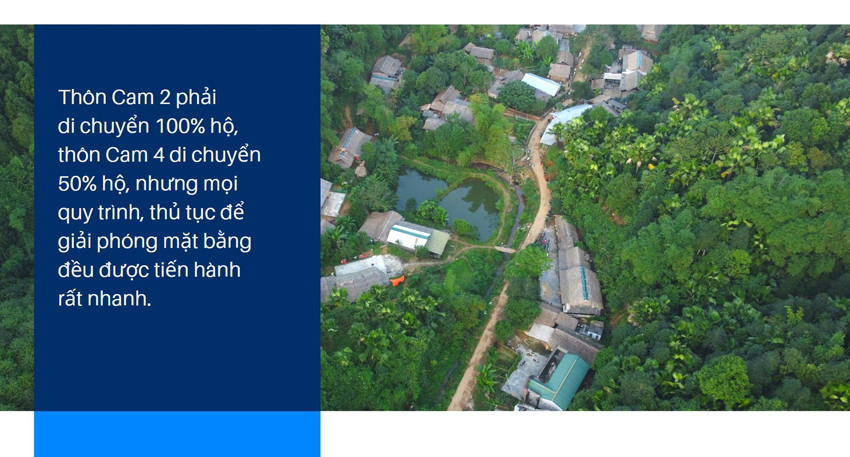 Tất cả công việc đều đặt mục tiêu cuối cùng là để người dân đồng thuận. Bởi vậy, có những thôn như Cam 2 phải di chuyển 100% hộ, thôn Cam 4 di chuyển 50% hộ, nhưng mọi quy trình, thủ tục để giải phóng mặt bằng đều được tiến hành rất nhanh.