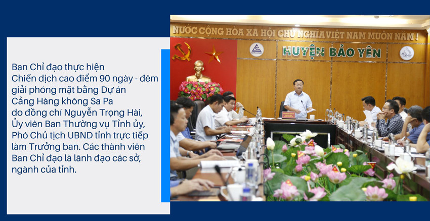Ban Chỉ đạo thực hiện Chiến dịch cao điểm 90 ngày - đêm giải phóng mặt bằng Dự án Cảng Hàng không Sa Pa do đồng chí Nguyễn Trọng Hài, Ủy viên Ban Thường vụ Tỉnh ủy, Phó Chủ tịch UBND tỉnh trực tiếp làm Trưởng ban. Các thành viên Ban Chỉ đạo là lãnh đạo các sở, ngành của tỉnh.