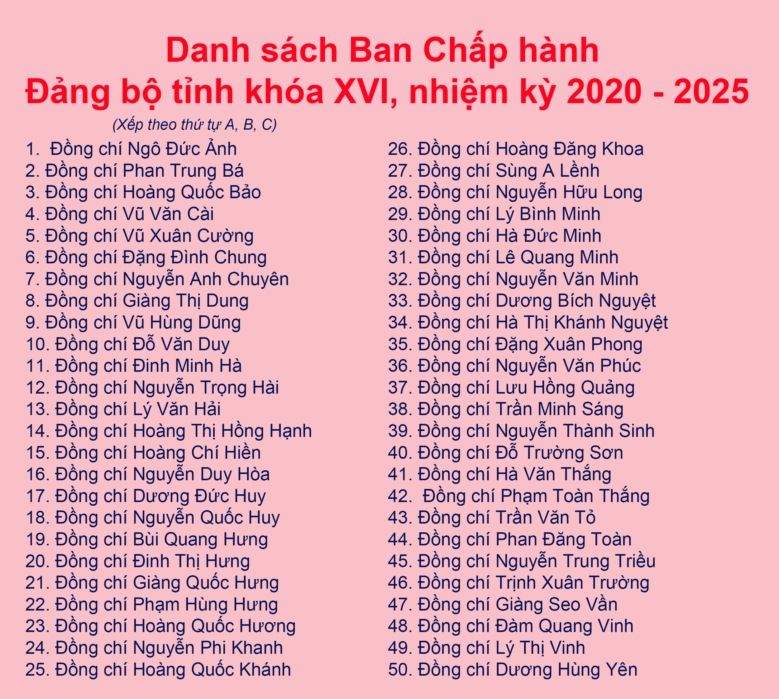 50 đồng chí trúng cử Ban Chấp hành Đảng bộ tỉnh Lào Cai khóa XVI, nhiệm kỳ 2020 - 2025