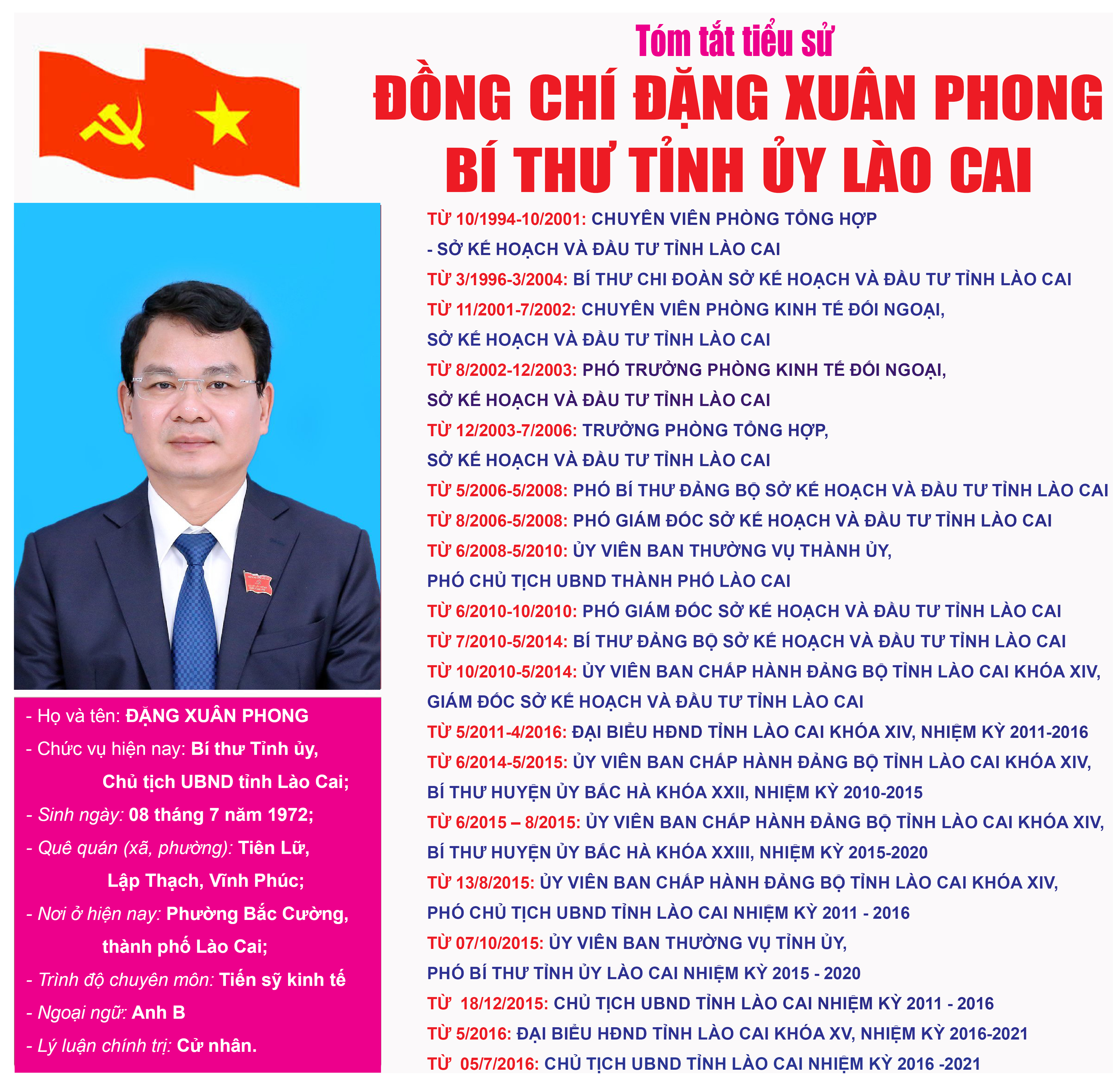 Theo kết quả bầu cử tại Hội nghị Ban Chấp hành Đảng bộ tỉnh khóa XVI lần thứ nhất, Đồng chí Đặng Xuân Phong được bầu giữ chức Bí thư Tỉnh ủy Lào Cai khóa XVI.
