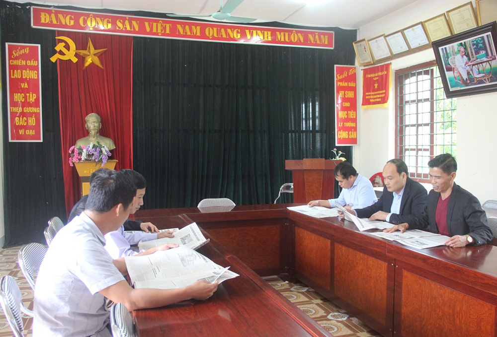 Cán bộ xã Bản Xen theo dõi thông tin về Đại hội đại biểu Đảng bộ tỉnh qua Báo Lào Cai.