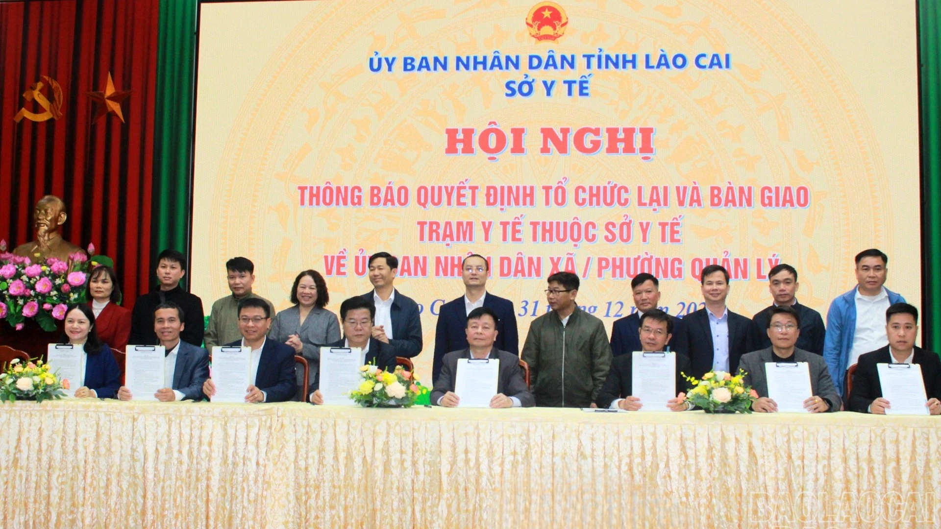 Tại hội nghị, Sở Y tế đã công bố Quyết định số 2636/QĐ-UBND ngày 29/12/2025 của UBND tỉnh Lào Cai về việc tổ chức lại các trạm y tế thuộc các trung tâm y tế khu vực, chuyển về trực thuộc UBND xã, phường quản lý.
