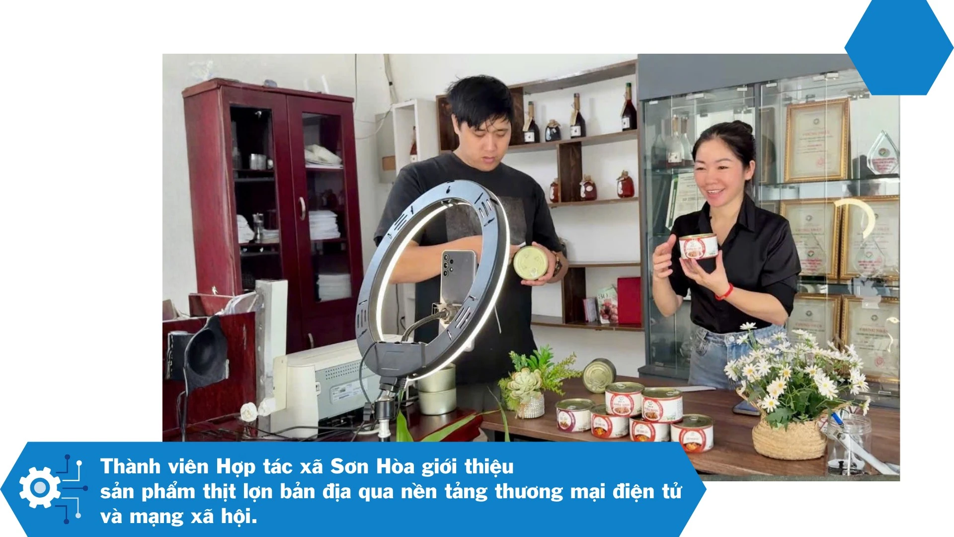 Tại Hợp tác xã Sơn Hòa, những đặc sản từ lợn đen bản địa như: thịt lợn tươi sơ chế, thịt sấy, ruốc, khâu nhục hay thịt hun khói được chế biến, đóng gói và dán tem truy xuất nguồn gốc trước khi đưa ra thị trường tiêu thụ. Nhờ có công nghệ số, hợp tác xã đã đưa sản phẩm lên các sàn thương mại điện tử, nên hiệu quả kinh doanh cao hơn.
