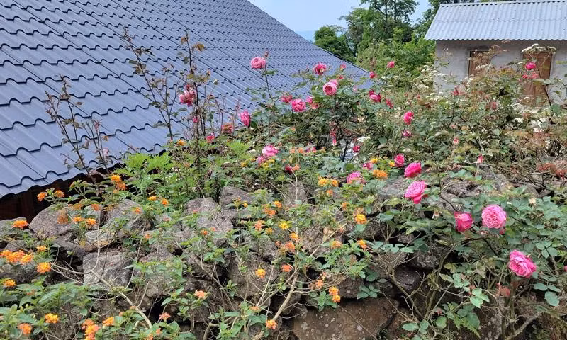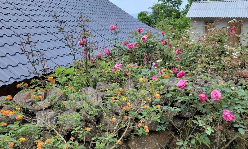 Đi quanh bản Sì Thâu Chài đâu đâu cũng bắt gặp những đóa hồng nở rộ thơm ngát.