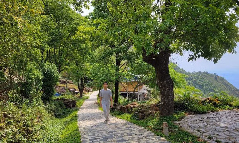 Buổi sáng được thảnh thơi dạo bộ trên con đường lát gạch, hít thở không khí trong lành xung quanh là cây xanh bao phủ quả là mê đắm.