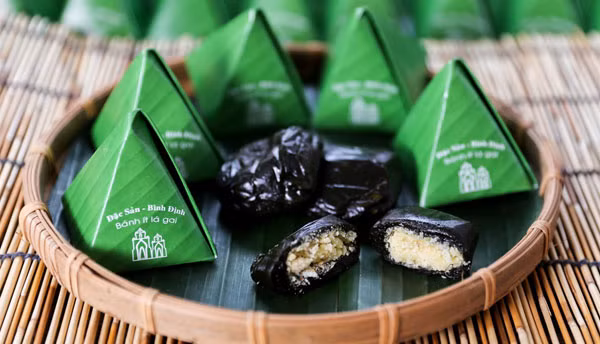 Bánh ít lá gai là món bánh truyền thống của người Bình Định vào dịp đầu năm hay khi cưới hỏi. Lớp vỏ bánh dẻo thơm được làm từ gạo nếp, phần nhân bên trong là đậu xanh hoặc dừa ngào béo thơm. Khi ăn, bánh có vị dai giòn gần giống như bánh da lợn.