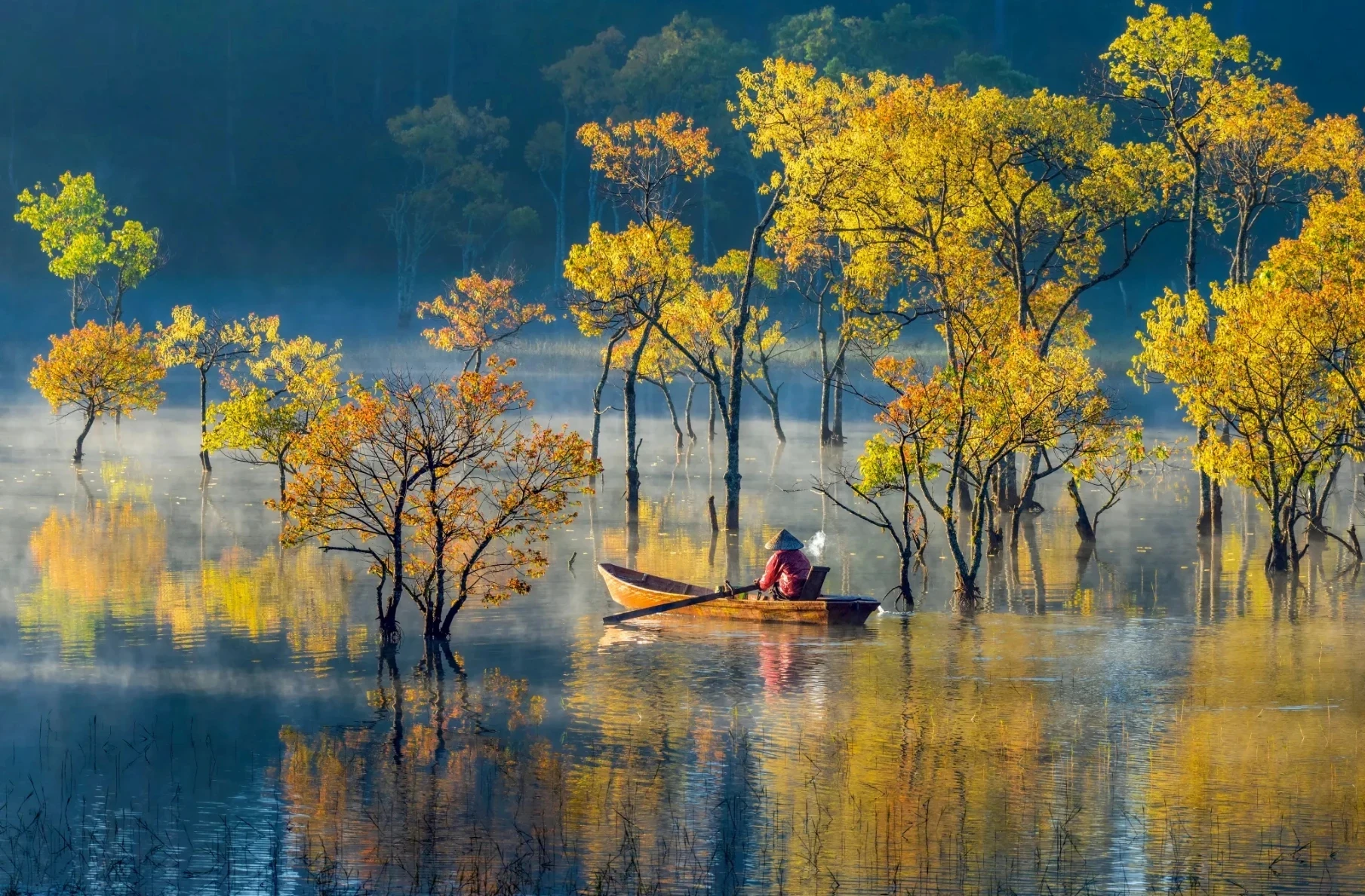 Mù Cang Chải, nơi có ruộng bậc thang ngập nắng đẹp nhất, cách Hà Nội khoảng 300 km về phía tây bắc. Vào mùa cấy từ tháng 5 đến tháng 6, các ngọn đồi được tạo hình bởi những cánh đồng lúa lấp lánh nước và vào mùa thu hoạch (mùa thu) nhuộm một màu vàng óng ả.