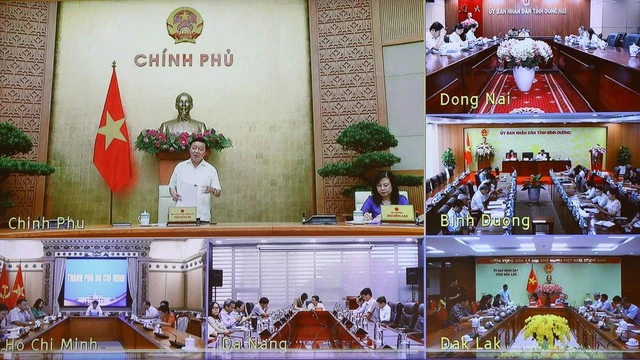 Cuộc họp kết nối trực tuyến tới nhiều điểm cầu ở các địa phương.