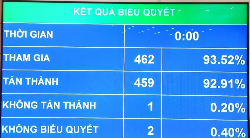Kết quả biểu quyết điện tử cho thấy, có 459 đại biểu tham gia biểu quyết tán thành (chiếm tỷ lệ 92,91 %). Như vậy, với đa số đại biểu tham gia biểu quyết tán thành, Quốc hội đã chính thức thông qua Nghị quyết về giám sát chuyên đề “việc triển khai thực hiện các Nghị quyết của Quốc hội về các Chương trình mục tiêu quốc gia về xây dựng nông thôn mới giai đoạn 2021 - 2025, giảm nghèo bền vững giai đoạn 2021 - 2025, phát triển kinh tế - xã hội vùng đồng bào dân tộc thiểu số và miền núi giai đoạn 2021 - 2030”.