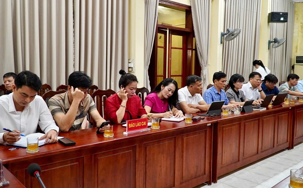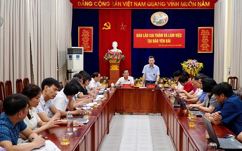 Đại diện hai cơ quan Báo Yên Bái và Lào Cai tại buổi làm việc.
