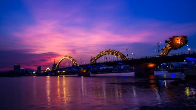Hay trải nghiệm Cầu Rồng Đà Nẵng - cây cầu dài nhất Việt Nam. Cầu rồng trở nên đặc biệt ấn tượng vào ban đêm khi được thắp sáng bởi đèn LED nhiều màu sắc. Mỗi cuối tuần, Cầu Rồng ở Đà Nẵng phun lửa và nước từ miệng, tạo nên cảnh tượng ngoạn mục thắp sáng bầu trời đêm.