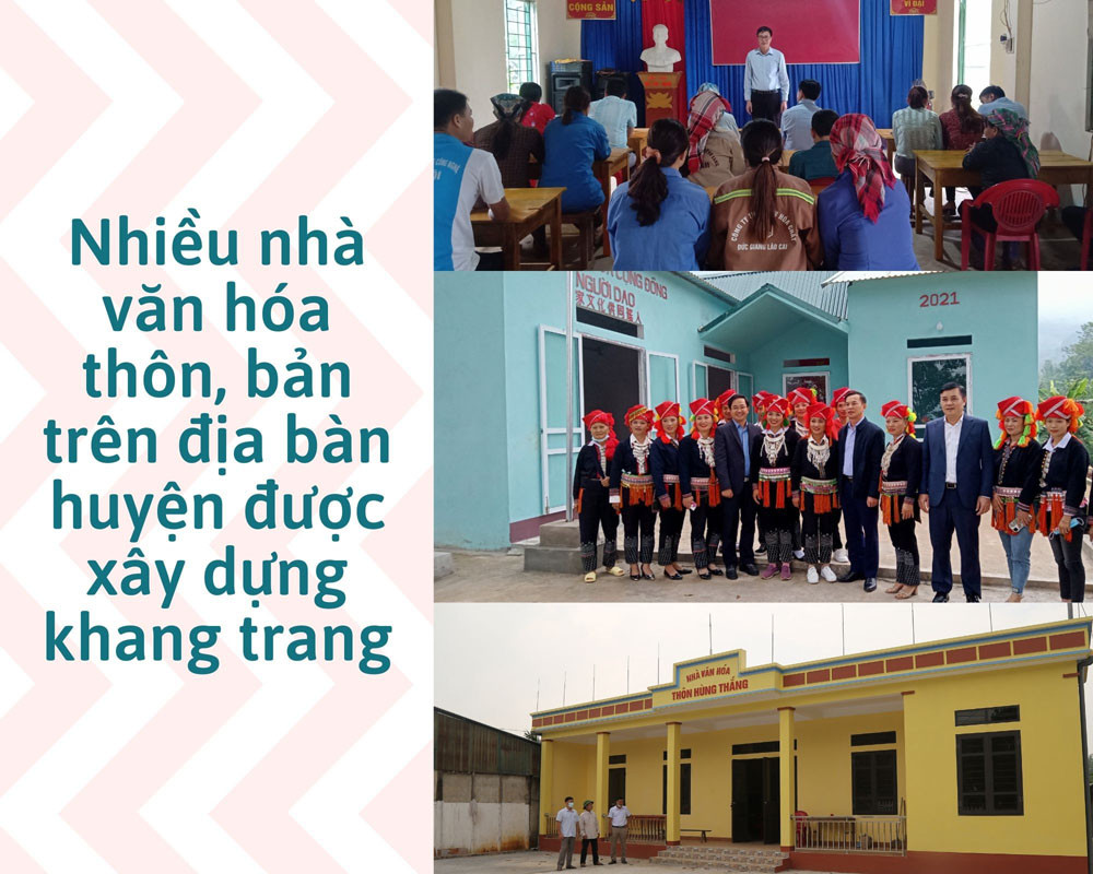 Bà Lê Hải Thanh, Trưởng Phòng Văn hóa - Thông tin huyện Bảo Thắng cho biết: Để nhà văn hóa thực sự là nơi sinh hoạt văn hóa, luyện tập thể thao của người dân, việc quy hoạch xây dựng nhà văn hóa có quy mô như một thiết chế văn hóa được đặt lên hàng đầu. Đến nay, toàn huyện có 165 nhà văn hóa có sân tập luyện thể dục, thể thao và các công trình phụ trợ. Nhà văn hóa các thôn, tổ dân phố được đầu tư trang - thiết bị bằng nguồn vốn Nhà nước và nguồn xã hội hóa. Điển hình như thôn Nậm Hẻn, xã Gia Phú xây dựng nhà văn hóa trị giá hơn 700 triệu đồng (trong đó Nhà nước hỗ trợ 100 triệu đồng, còn lại người dân đóng góp); nhà văn hóa thôn Hùng Thắng, xã Gia Phú, tổng đầu tư 700 triệu đồng (trong đó Nhà nước hỗ trợ 100 triệu đồng, còn lại do người dân đóng góp); nhà văn hóa thôn Cốc Sâm 4 và nhà văn hóa thôn Cốc Sâm 5, xã Phong Niên, người dân mỗi thôn đóng góp hơn 200 triệu đồng…